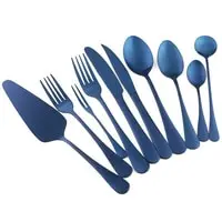 Элегантные Синие столовые приборы, набор, десертная вилка, торт, нержавеющая сталь, посуда для дня рождения, посуда, стейк на ужин, нож, мороженое, совки