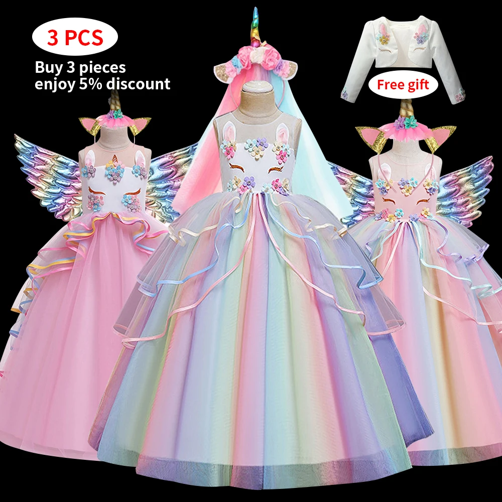 Лидер продаж; Платье для девочек с фантазийным единорогом; Вечерние платья для подростков; Сетчатое детское элегантное платье принцессы без рукавов; Одежда для малышей