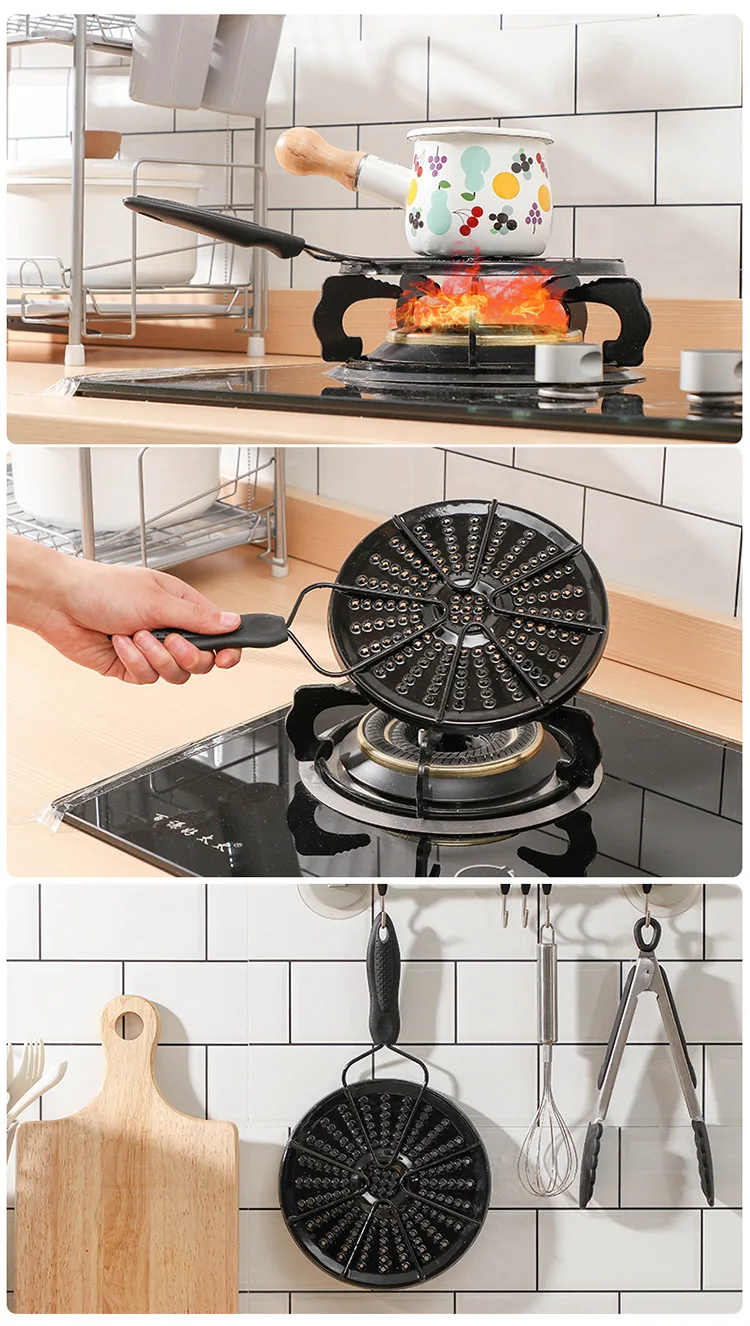 Рассеиватель тепла создает плоскую поверхность для приготовления пищи, уменьшает и распределяет тепло равномерно, устраняет горячие точки в кастрюлях и защищает продукты от палящего Равномерно поглощает и рассеивает тепло для повышения эффективности использования энергии; Устраняет горячую кастрюлю и ручки кастрюль; Безопасно для использования на электрических, газовых и стеклянных плитах Медленная Варка соусов и других продуктов без их обжига или кипячения; Помогает сбалансировать небольшие горшки, такие как грелки для масла и эспрессоПараметры:
