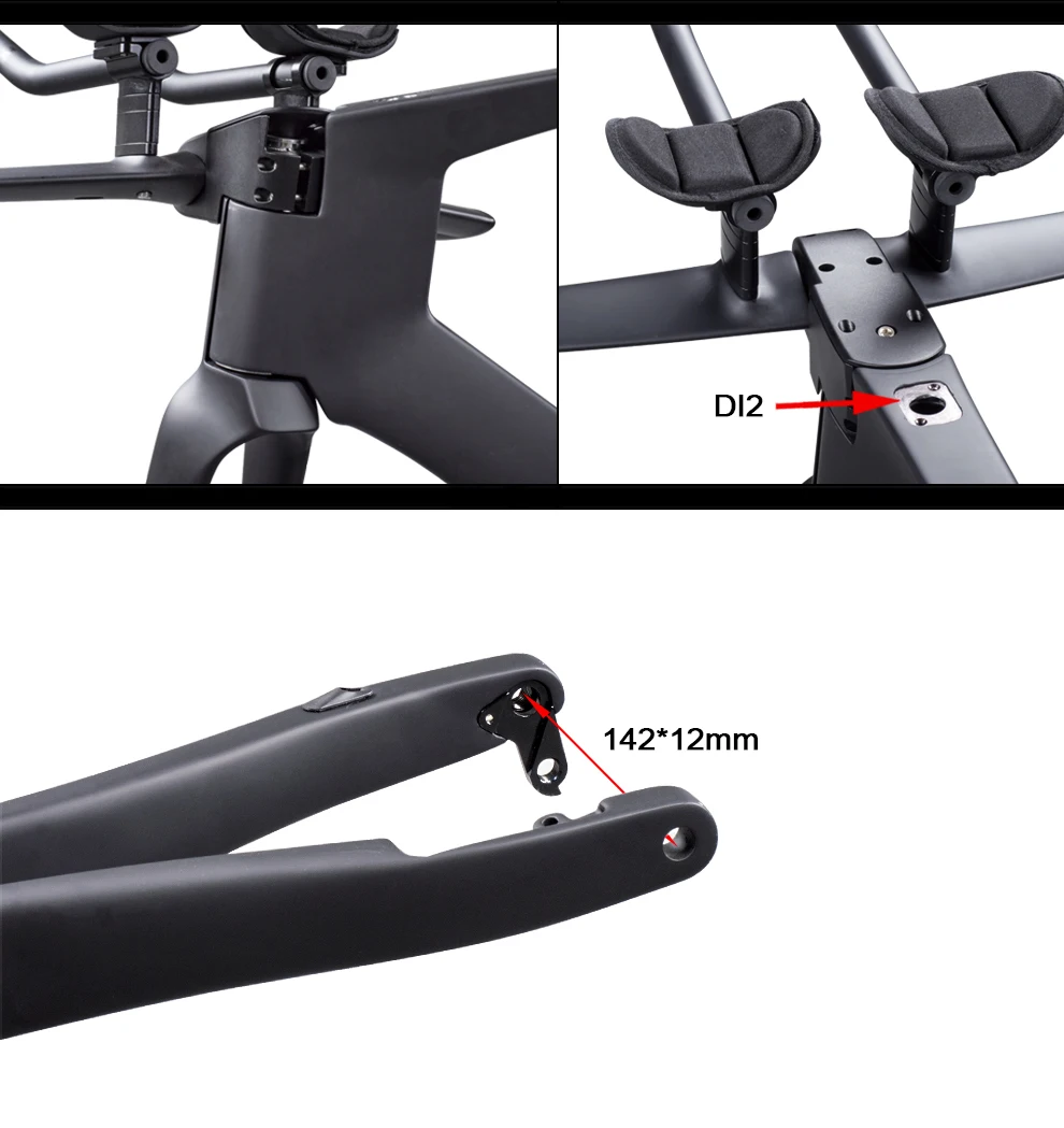 Использование для: триатлона/триатлона Материал: полностью T800 углерод Отделка: UD матовая/глянцевая/пользовательские цвета Гарнитура: коническая (1-1/8 "до 1-1/2") Размер стержня: 420 мм Размер стержня: 100 мм Размер дискового тормоза: 140 мм BB: BB386(73 мм) Доступные размеры: XS/S/M/L Максимальный размер шин: 700x28C Тормоз: плоское крепление Вес в груженом состоянии: 110 кг Groupset: Di2 и совместим с машиной