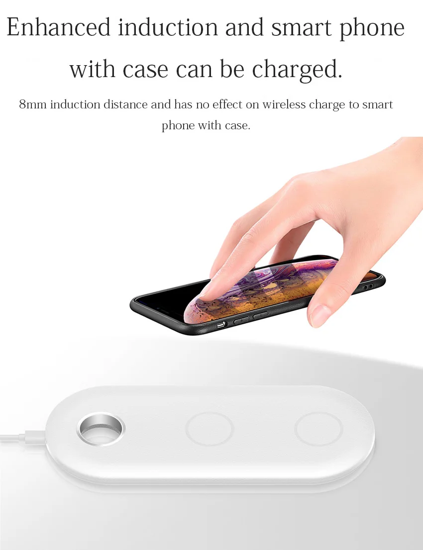 3 в 1 Универсальное зарядное устройство Два смартфона и один apple watch можно заряжать одновременно.