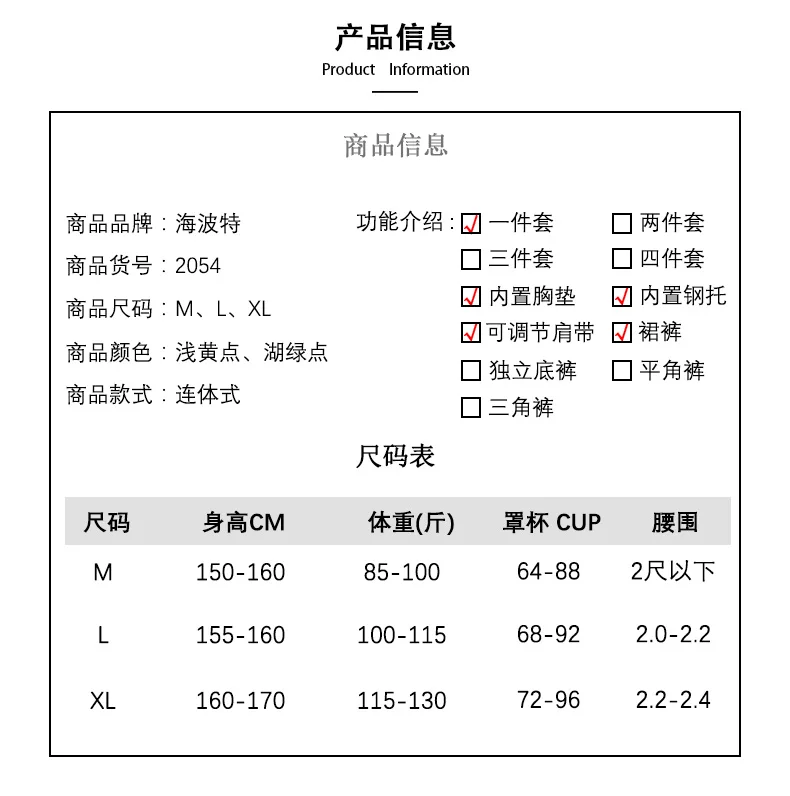 Опишите размеры продукта, включая различные размеры skus.