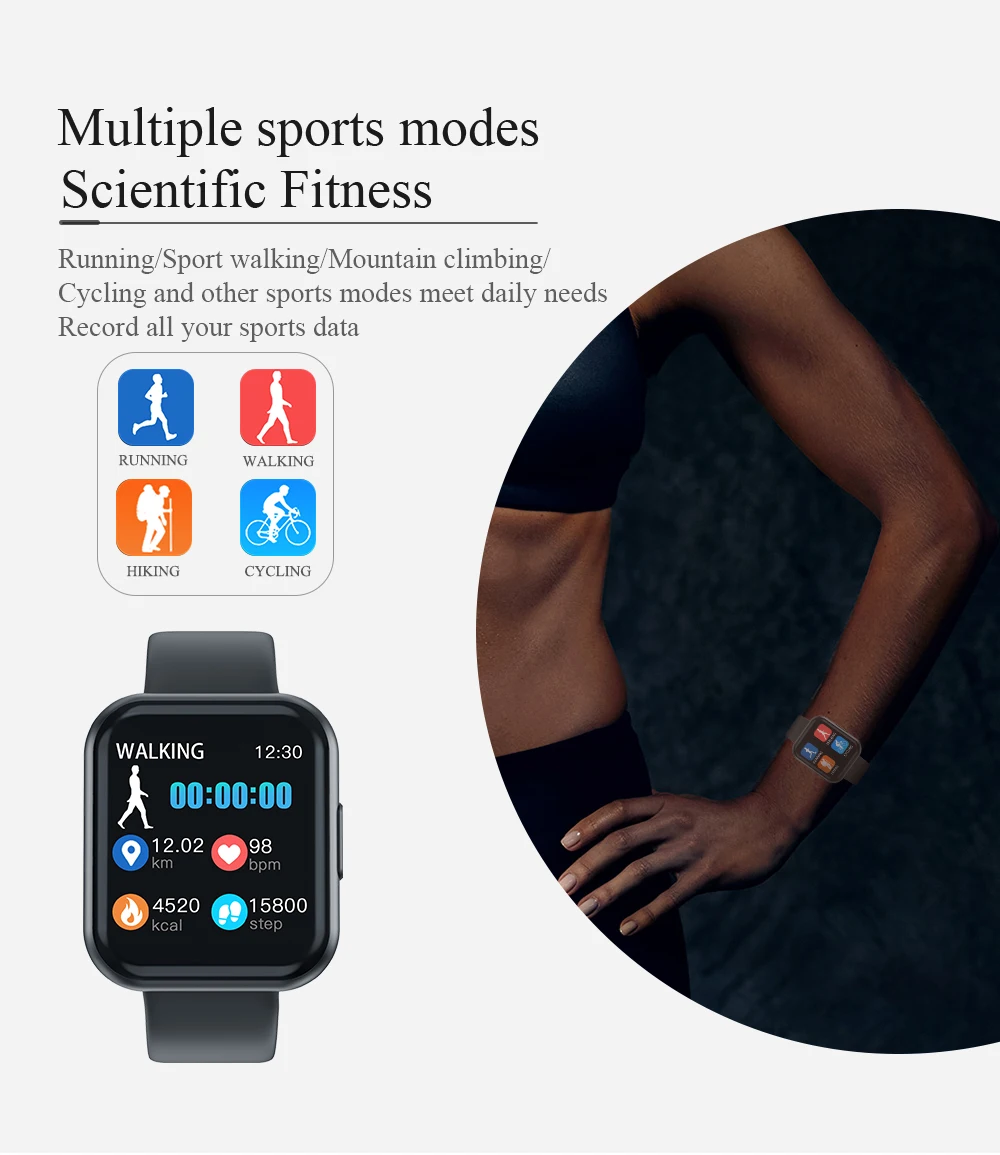 T88 Smart Watch Men Women Heart Rate Detection Sports Pedometer Full Touch Screen Bluetooth Smartwatch For iphone Huawei phone