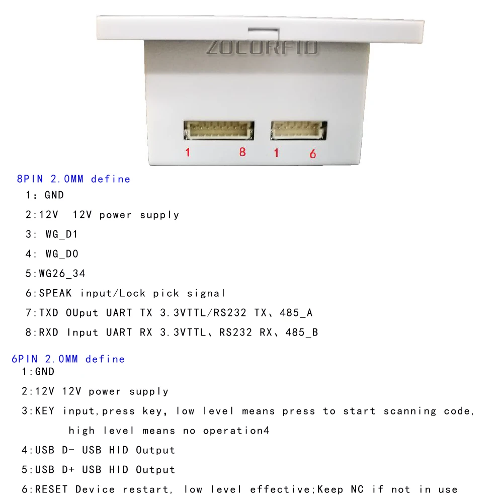 Способ связи: Wigan 26/34 + UART TTL (по умолчанию) или RS232 (опционально) или RS485 (опционально) или USB (опционально)