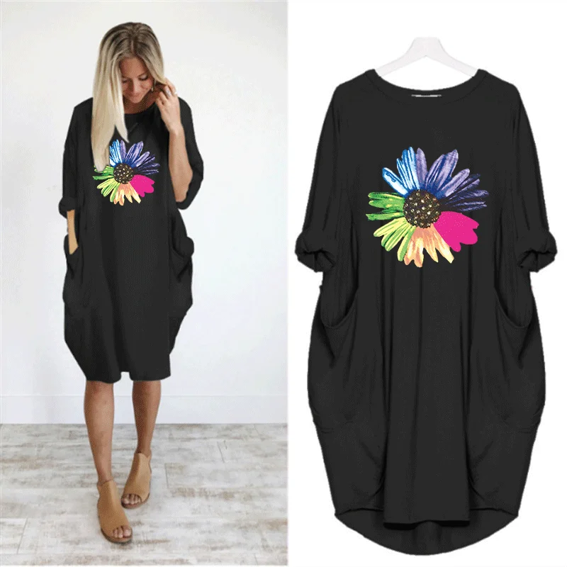 Женское платье с милым цветочным принтом и карманом, повседневные свободные винтажные вечерние платья для девочек на осень размера плюс M-5XL, одежда Kawaii, женские платья 2020
