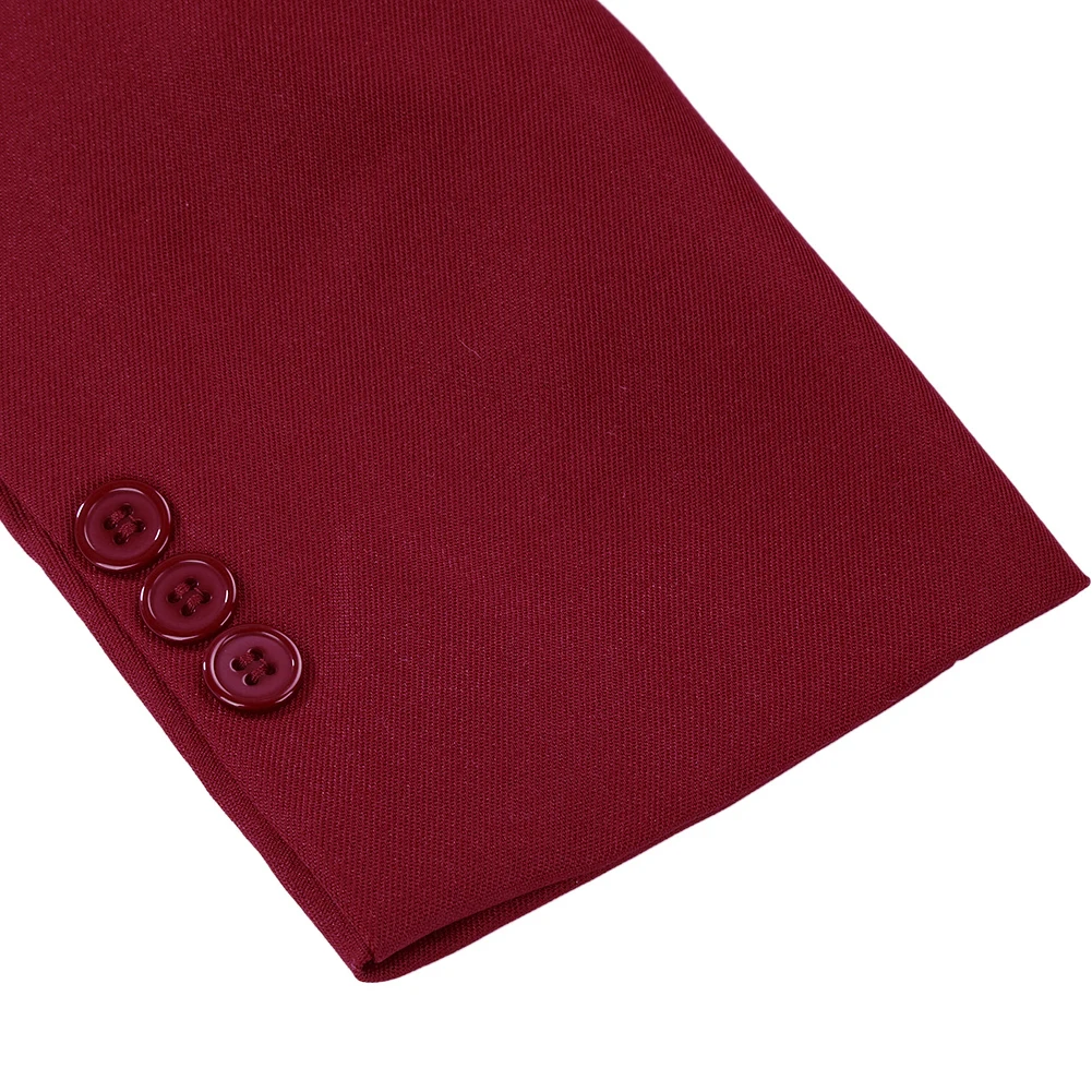 Приталенный костюм, включающий жилет, куртку и длинные штаны.
