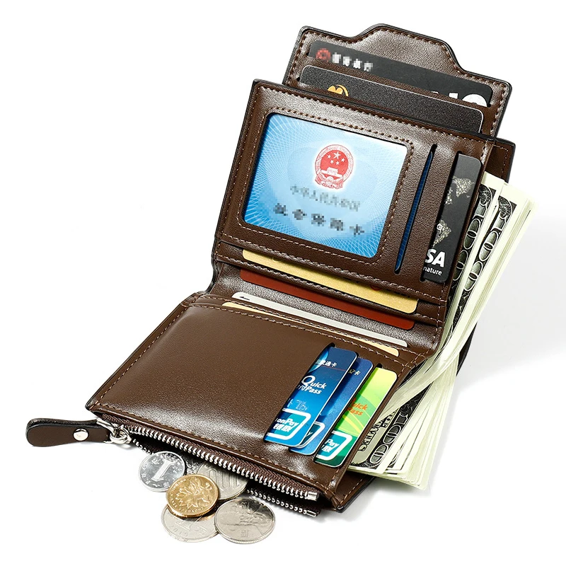 Мужской кошелек, новый модный кошелек для мужчин с карманом для монет, кошелек с отделением для ID карт на молнии, двойной Кошелек для монет, Мужская короткая сумка-клатч