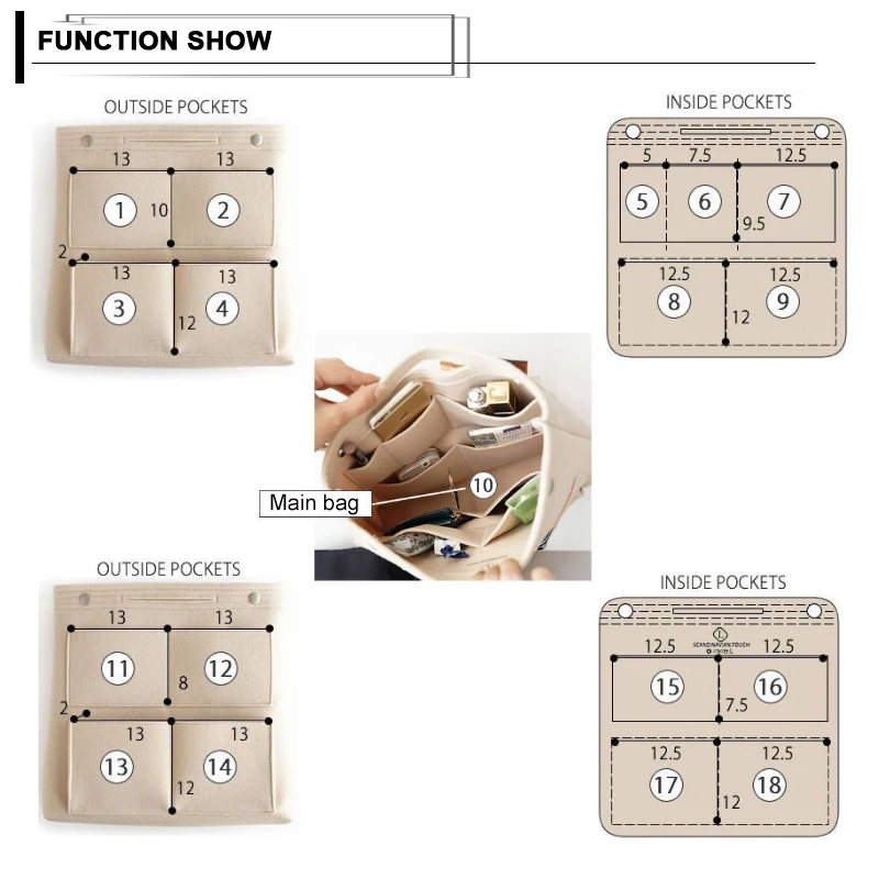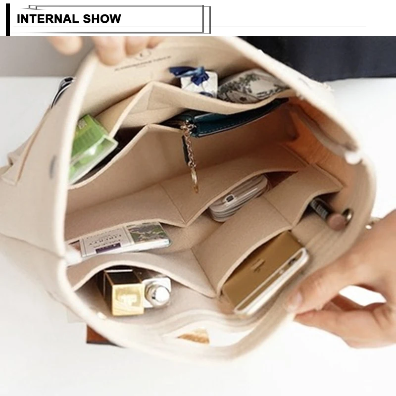 Сумка для хранения разного цвета, органайзер для макияжа, войлочная вставка, сумка для сумки, дорожный Внутренний кошелек, портативный органайзер для косметички