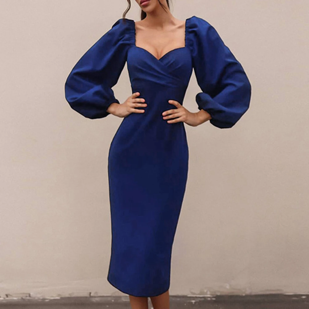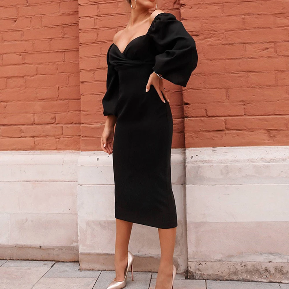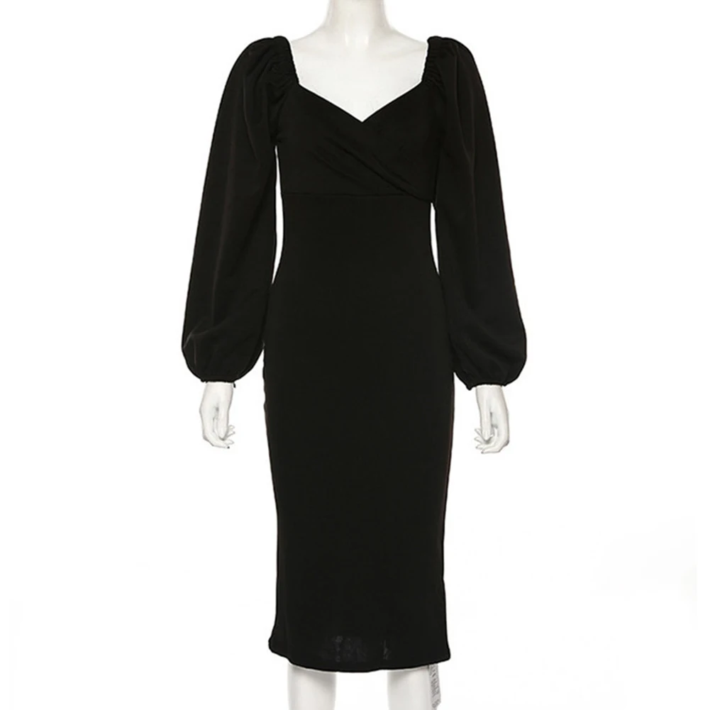 Женское сексуальное облегающее платье миди с длинным рукавом, глубоким вырезом и v-образным вырезом, вечерние платья