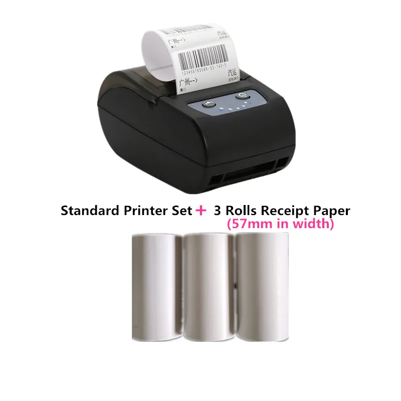 Когда вы хотите напечатать квитанцию или текст, вы можете использовать его как принтер квитанции, вам нужно использовать бумагу для чеков или бумагу для наклеек шириной 57 мм, и вы можете разрезать ее на любой длине, которую вы хотите.