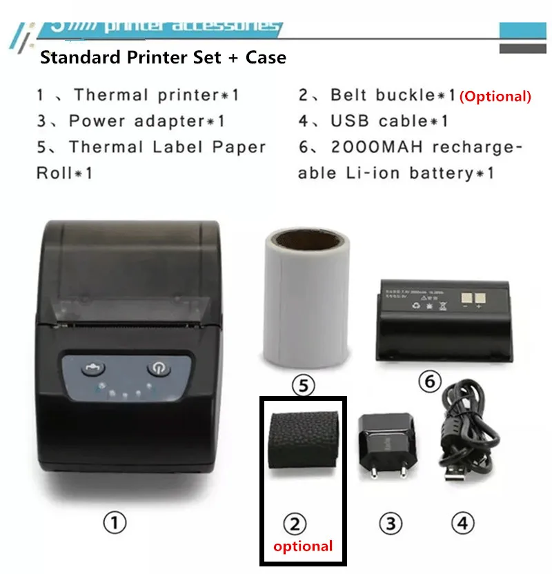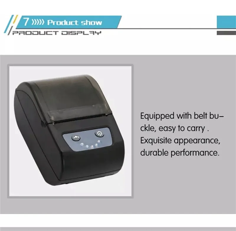 Функции:2 в 1, вы можете использовать его какПринтер для чековИПринтер для печати этикетокПредоставляем приложения для android и IOSЗагрузка приложения для Android: MLabelПожалуйста, оставьте нам свой адрес электронной почты для файлов приложения напрямую или вы можете скачать приложение по ссылке ниже, спасибо//www.mhtclouding.com/mht/service_en.html#softwareПечать USB на ПК: установите драйвер TSC (Пожалуйста, оставьте нам свой адрес электронной почты для водителя. Спасибо)Область применения:О: мобильная полицейская системаB: система распределения табакаC: система считывания счетчикаD: Мобильный офис/Мобильные логистические системыE: портативное оборудованиеF: испытательное оборудование, вспомогательное оборудование.Основная информация и основные характеристикиОн применяет мобильные продукты для поддержки использования, и подходит для работы на открытом воздухеНебольшой размер, легкий вес, надежная производительность, прост в подключении, прост в использованииНизкие эксплуатационные расходы (без лент или чернильных картриджей, просто нужно купить термобумагу)Высокая скорость, длительный срок службы и высокое качество. Подходит для всех типов коммерческих розничных POS системВремя работы:Высокая емкость перезаряжаемая литиевая батарея и время ожидания 5-6 днейПолная зарядка (без остановки печати 120-150 м тепловой рулон, 20-25 шт рулонов в размере 58*30 мм)Языки:Поддержка нескольких языков, более 73 языковУпрощенный китайский/тайваньский или Гонконгский традиционный (сложный шрифт) или международные языкиДоступно много интерфейсов (usb / Bluetooth)Упаковка включает в себя: