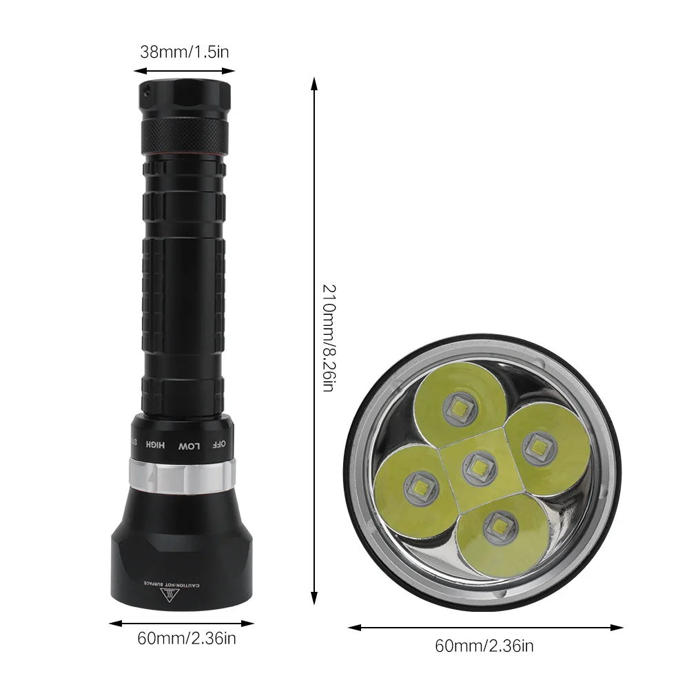 Название продукта: BORUiT DX5 мощный налобный фонарь Материал: Алюминиевый сплав Тип СВЕТОДИОДА: 5 шт XM-L L2 Светодиодная лампа Яркость: 6000 люмен Режимы: Низкий -- высокий -- стробоскоп Тип батареи: 2*22650 или 2*18650 перезаряжаемые литий-ионные батареи Специальная функция: Фонарик для дайвинга Класс водонепроницаемости: IPX8 Расстояние освещения: Максимальная 500 метров Глубина погружения: Максимум 80 м Вес нетто 430 г Размер блока 215*60*35 мм Сертификат Сертификация CE, ROSH, FCC, аддитивного цветового пространства