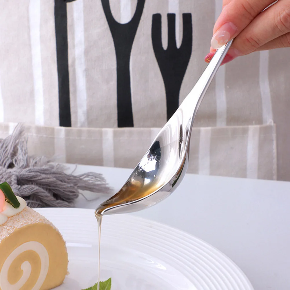 Stainless Steel Long Handle Duck Mouth Sauce Spoon Scoop Tableware Cooking Tool