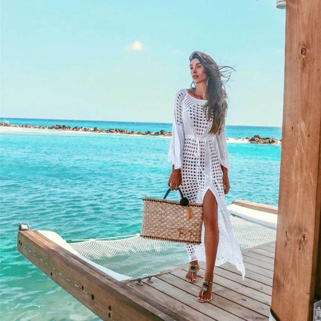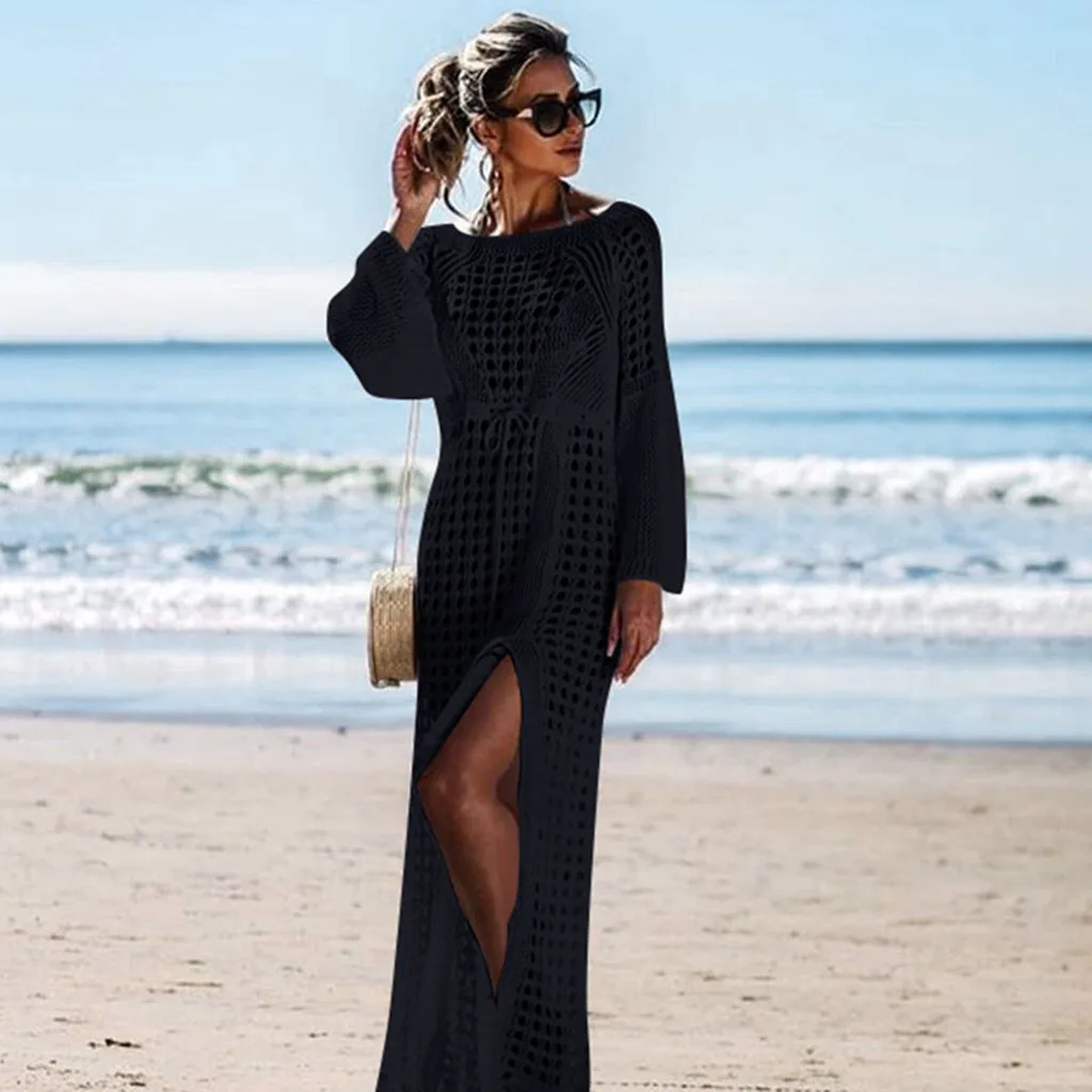 3. Круглый вырез,Рукав «фонарик», Вязаный, с вырезами, с разрезом по бокам, очаровательный и привлекательный. Простой, но модный. Свободная посадка. ПредотвращаетКожаПовреждение при игре на пляже.