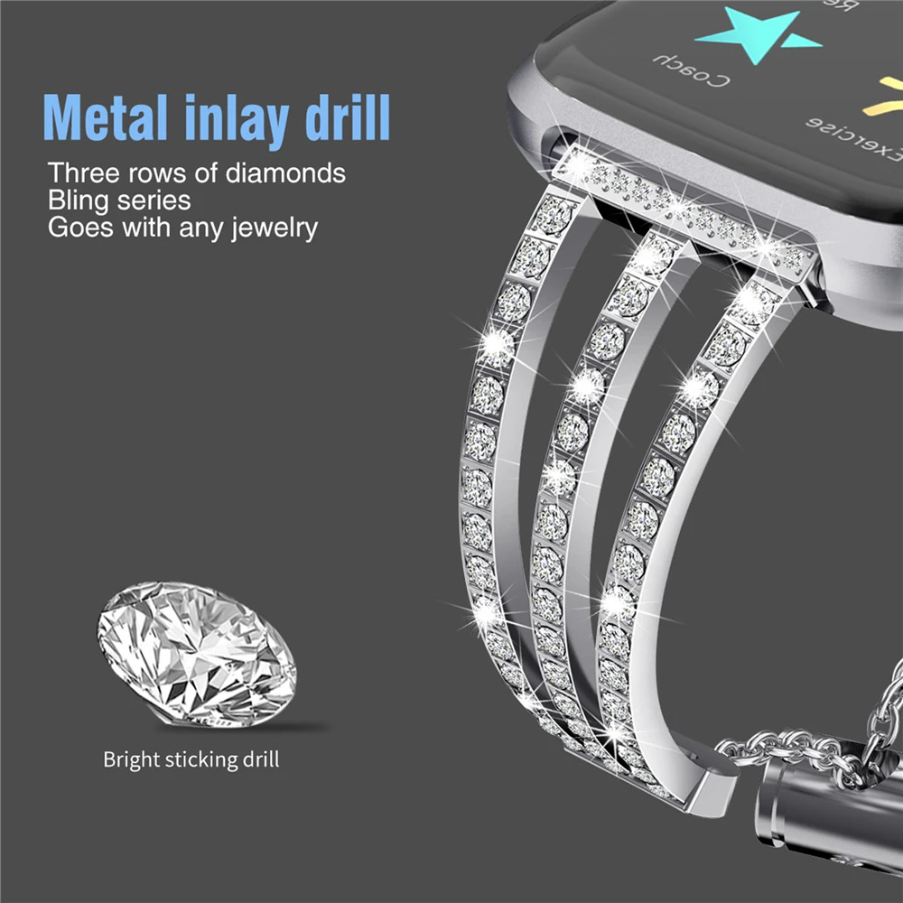 Металлический ремешок для наручных часовРегулируемый бриллиантовые ювелирные изделия часы ремешок ЗаменаДля смарт-часов Fitbit Versa 2 / Lite