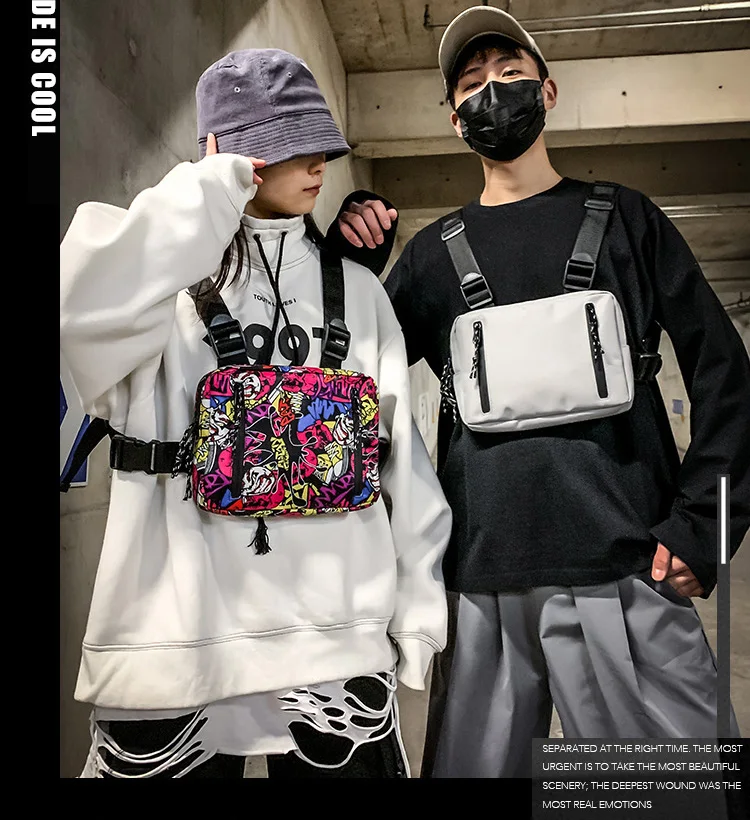 Регулируемый черный жилет в стиле хип-хоп Уличная функциональная тактическая нагрудная сумка Kanye West поясная сумка модная нейлоновая