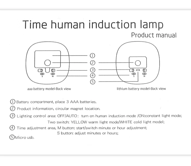 1. Индукционная лампа для человеческого тела: отображение времени, поворотное затемнение, индукция человеческого тела, переключение на холодный и теплый светильник, Магнитная Адсорбция, источник непрямого светильник.