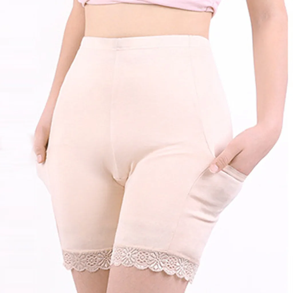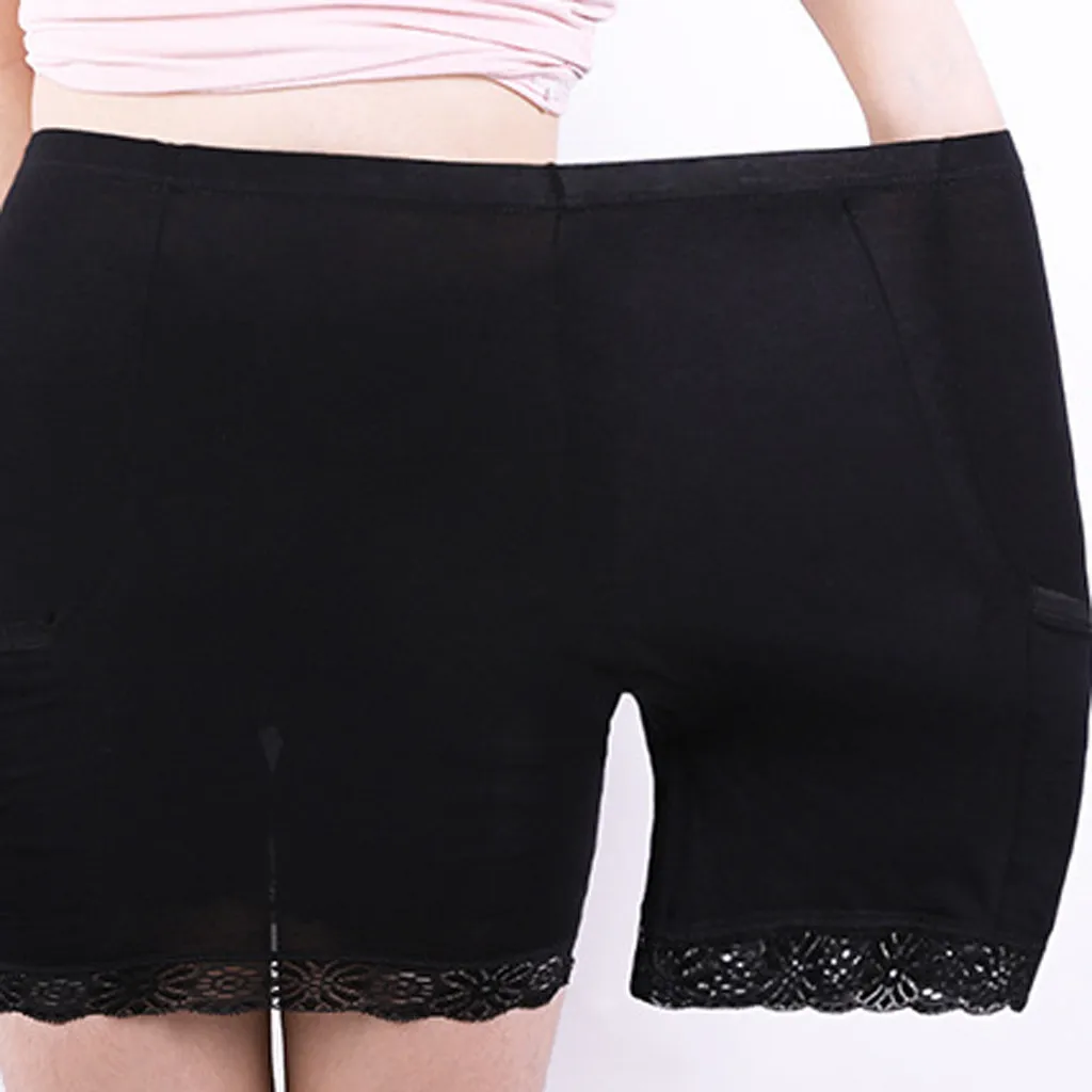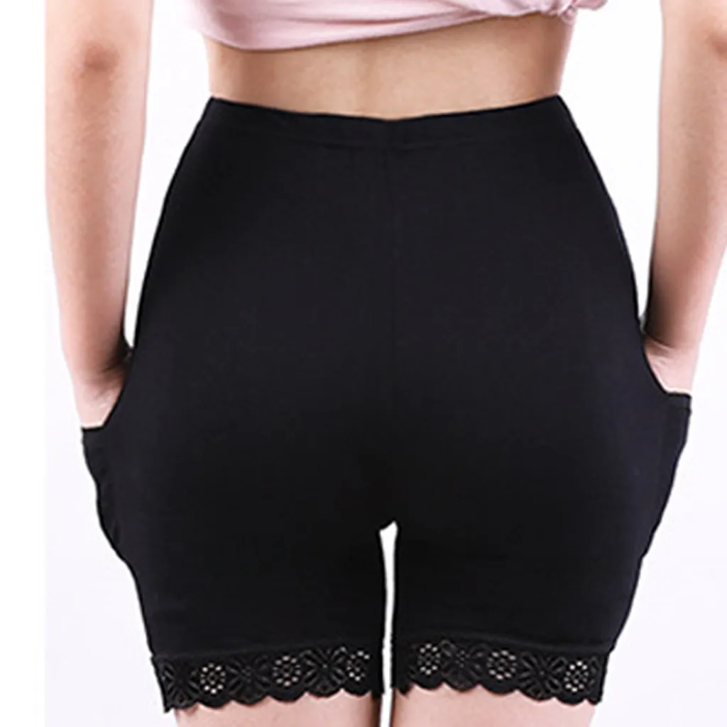 Женские леггинсы, повседневные кружевные Однотонные эластичные шорты, нижнее белье с карманами