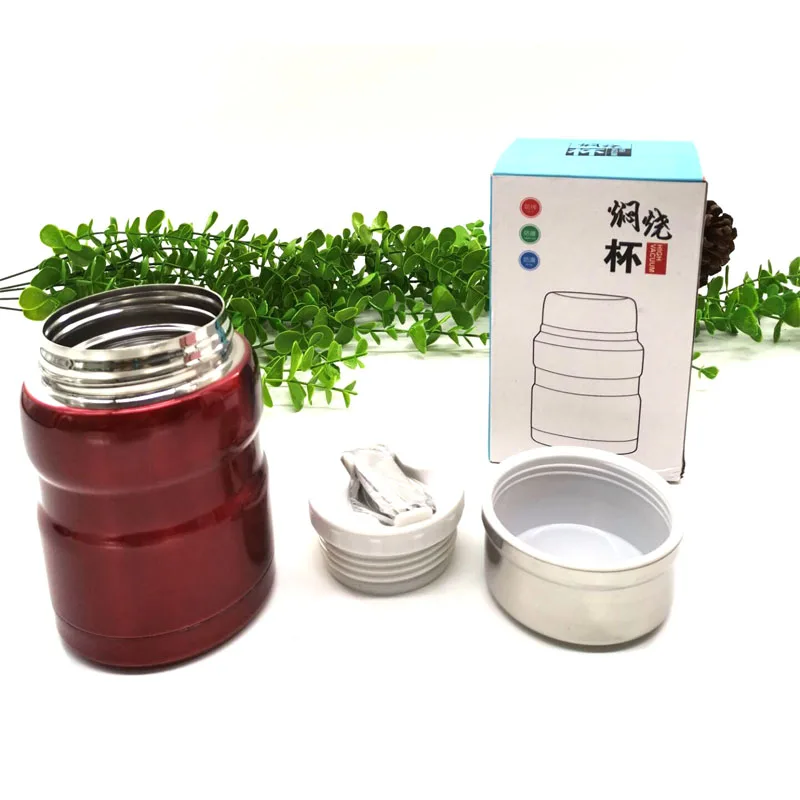 Вакуумная Изолированная банка для еды 18/8 нержавеющая сталь Ланч-бокс со складной ложкой с двойными стенками контейнер для еды BPA бесплатно