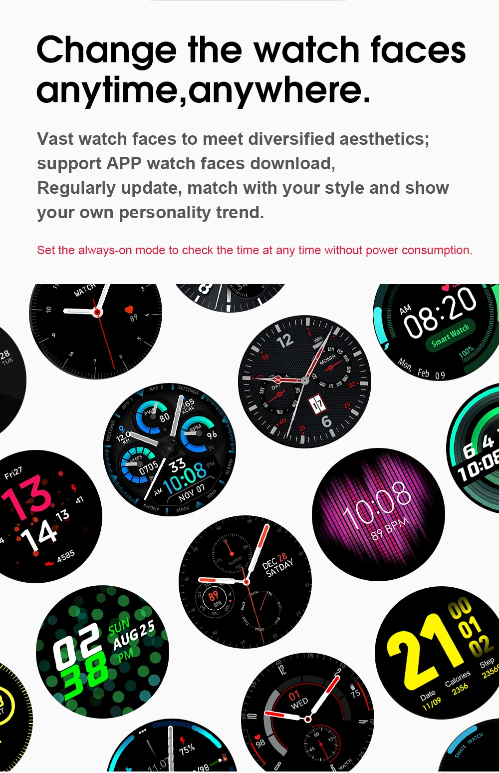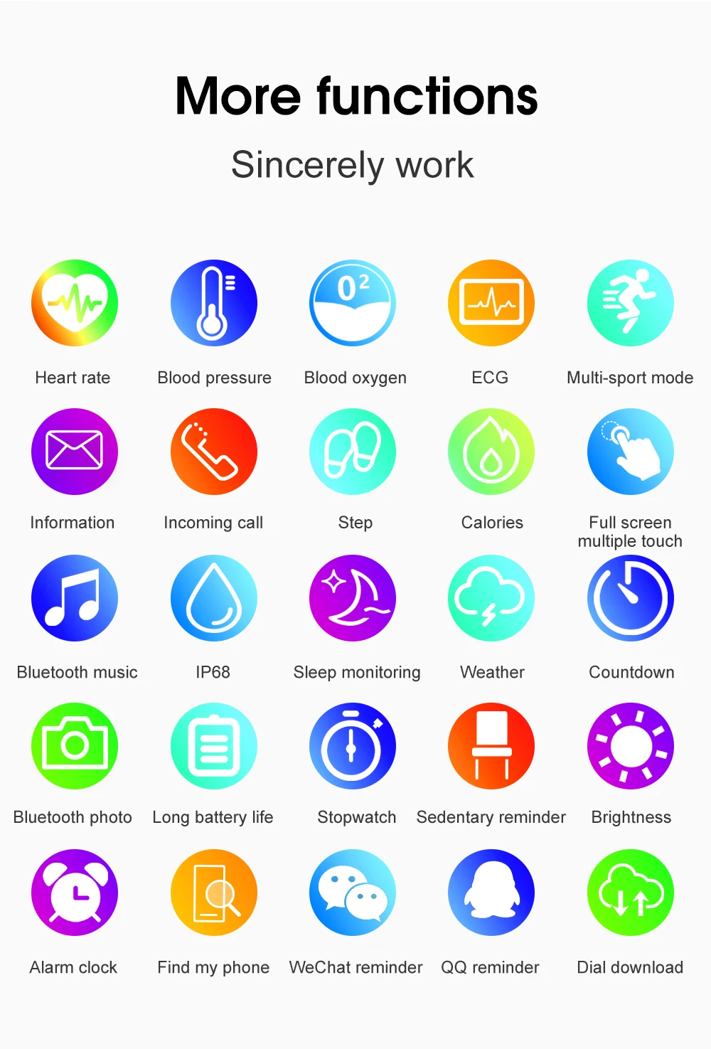 2020 Новое поступление, подарок при покупке! Sello точки: IP68 Водонепроницаемый, 1,2 Дюймов Полное ламинирование AMOLED высокой четкости 390*390 круглый экран, Беспроводная зарядка, приложение для часов уход за кожей лица пуш-ап, 24hrs всегда в режиме ожидания, Bluetooth 5,1, шрифт (такой же как на Android телефона) Параметры продукта: Особенности Чип процессора: Nordic NRF52840 ОЗУ: 256 Кб, ПЗУ: 1 Мб + 128 Мб Экран Размер: 1,2 "TFT круглый полный сенсорный Экран 390*390 Водонепроницаемый: IP68 водонепроницаемый Bluetooth :Bluetooth 5,1 BLE Аккумулятор: 380 мАч (большой аккумулятор для вашего использования) Качество Стандартный: GB4943.1-2011;GB/T22450.1-2008 Зарядка: магнитное зарядное устройство Особенности: Пульсометр, ЭКГ, артериальное давление, кислород, шаги, секундомер, управление музыкой, Bluetooth Камера ● Язык, время, дата Он будет синхронизировать дату и время с телефона, когда Bluetooth подключен. ● Интерфейс ожидания Есть пары циферблатов для опций, нажмите и удерживайте 2 секунды на кнопке «домой», чтобы изменить его, когда оно находится на домашней страничке. ● Строка состояния Выполните вход в режим ожидания с поддержкой Bluetooth, QR-кода (Сканируйте мобильный телефон и скачайте «HealthDay»), регулировкой яркости и статуей аккумулятора. ● Сообщение Интерфейс в режиме ожидания справа переходит к уведомлению, оставляя уведомления, уведомления могут быть синхронными мобильными наконечниками, например, буквой QQ WeChat, если содержимое информации детально, чтобы завершить ваш мобильный телефон QQ WeChat, набор уведомлений для отображения деталей, могут быть показаны последние оповещения, при звонке, активация буквой и вибрацией, Можно отклонить вызов. ● Шагомер, расстояние, калории Отображение шагов, пробега, калорий, каждый ночь в 12 o 'часах, данные будут сохранены и сброшены до 0. Нажмите, чтобы открыть контактную информацию и проверить ее. ● Для разных видов спорта Поддержка прогулок, бега, скакалки, альпинизма и велоспорта, баскетбола, плавания, йоги, настольного тенниса, бадминтона ● Здоровья Частота сердечных сокращений, артериальное давление, ЭКГ, кислород крови для тестирования ● Другое функции Монитор сна, секундомер, дистанционное управление музыкой, будильник, напоминание о сидячем положении, поиск вашего телефона, яркий экран запястья Языки поддержки часов: китайский, английский, японский, русский, испанский, французский, итальянский, немецкий, португальский, греческий, голландский, польский, тайский, Арабская, индийская Язык поддержки приложения: китайский, традиционный китайский, английский, русский, испанский, французский, японский, итальянский, немецкий, португальский, русский, турецкий, иврит, чешский, польский, Арабская, тайская, индонезийский, армянский, Посылка включает в себя: 1 * умные часы 1 * зарядный кабель 1 * Руководство пользователя