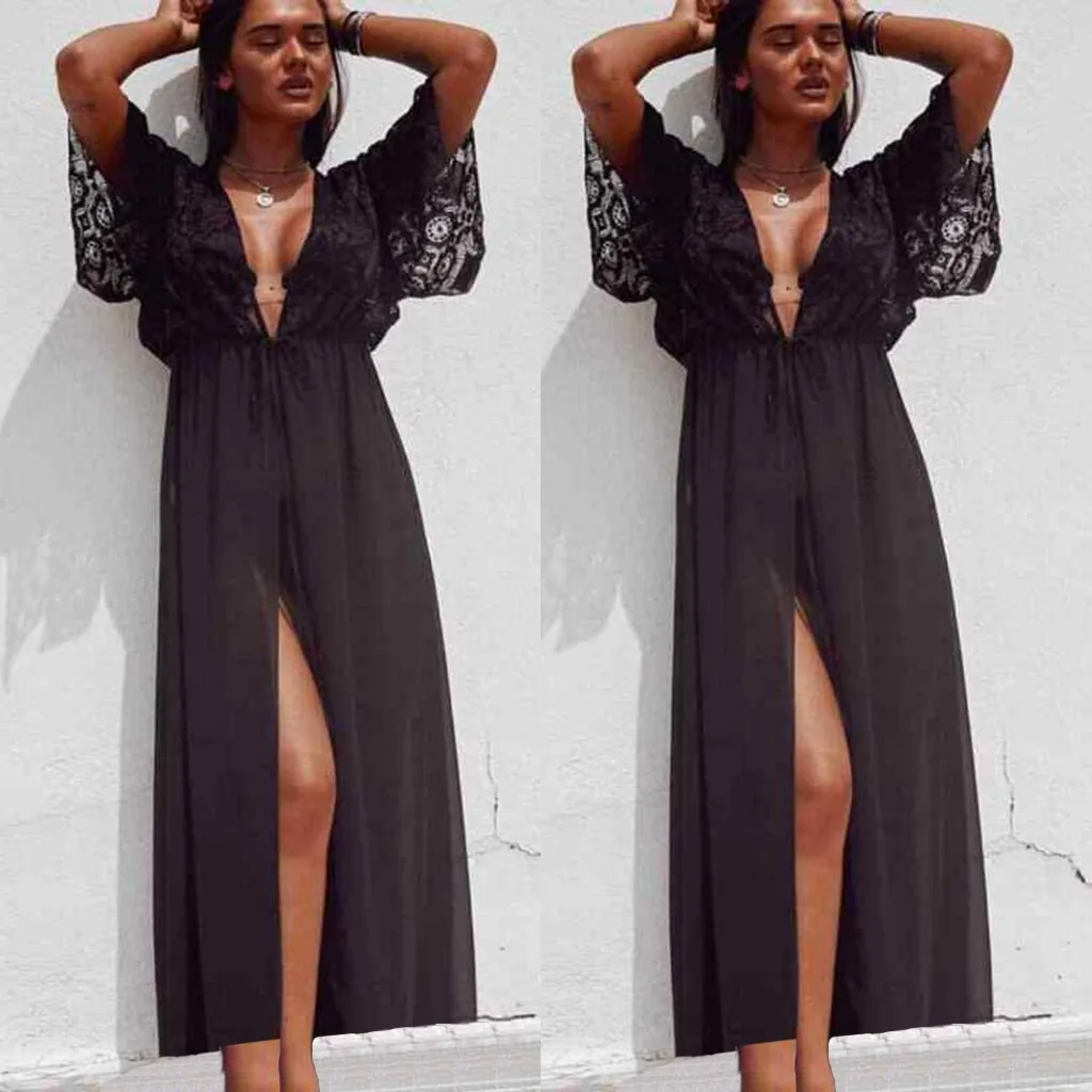 Сексуальное бикини, Пляжное Платье, женский купальник, шнуровка, накидка, купальник, Сращивание, повседневное парео, купальный костюм, свободное пляжное прозрачное сексуальное платье-туника