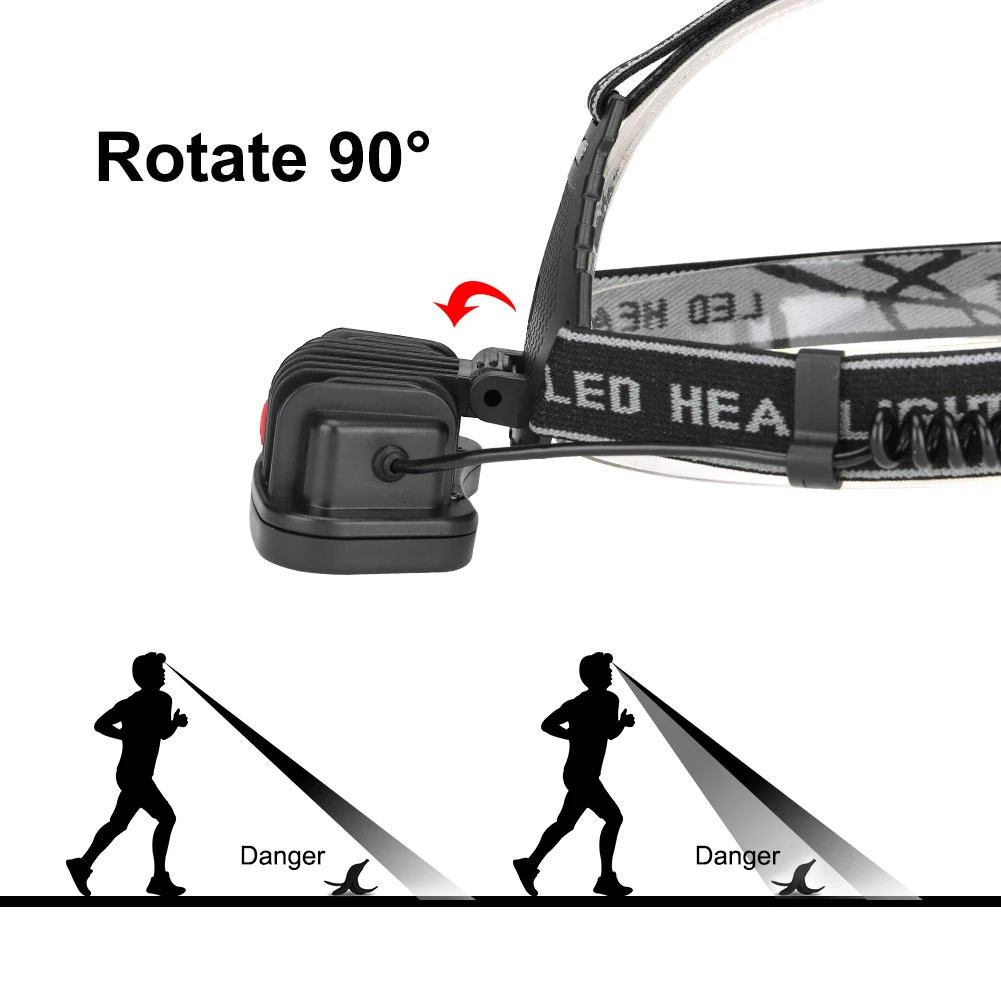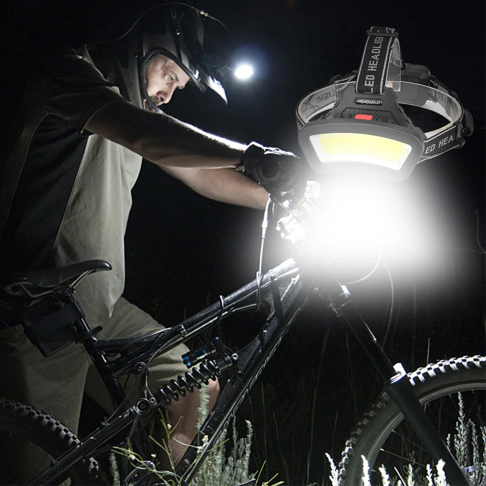Светодиодный налобный фонарь USB Перезаряжаемый головной светильник COB головной светильник со встроенным аккумулятором головная лампа 4 режима 2*18650 батарея