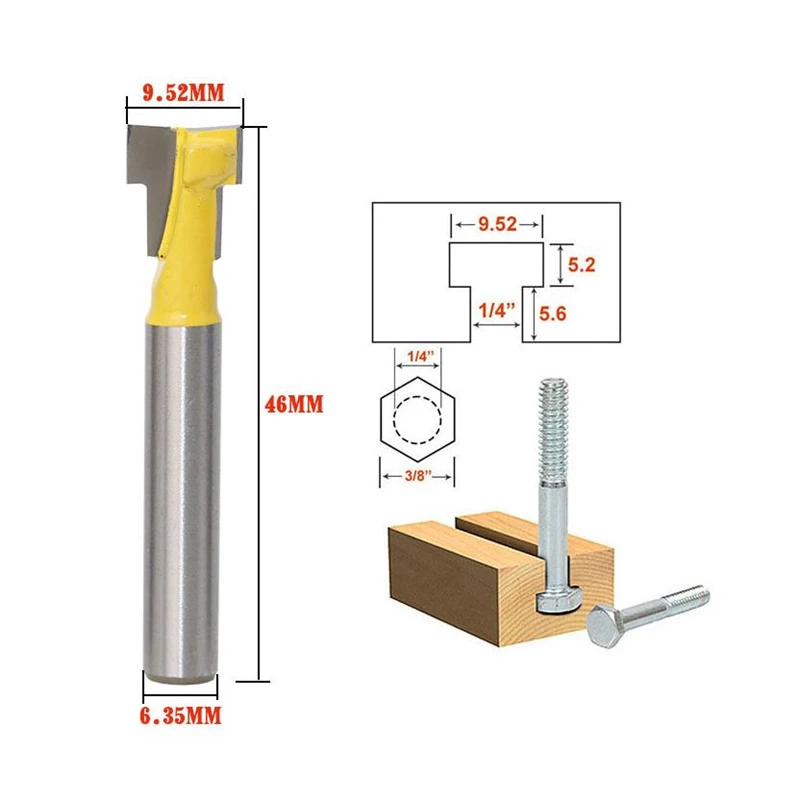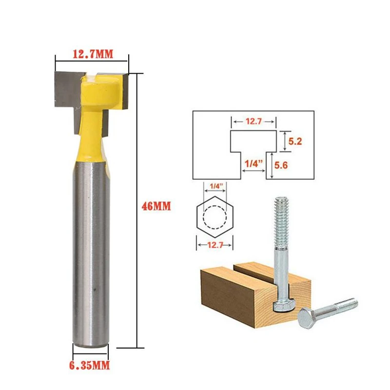 1/4 дюйма, 8 мм, 1/2 дюйма, лезвия для отверстий для ключей с хвостовиком, Т-образный паз, фреза, набор фрез для деревообработки, Т-образный болтСпецификация:Материал:Цементированный карбидДиаметр отверстия: около 9,52 мм и 12,7 ммСтандарт: 1/4*3/8 & 1/4*1/2 & 1/2*3/8 & 1/2*1/2 & 8*3/8 & 8*1/2