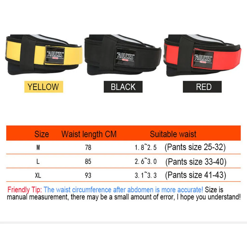 Новинка, высокое качество Основная часть талии широкая и изогнутая, что отвечает потребностям защиты человеческого тела. Изготовлен из нейлона и пены, удобный и прочный С липучкой и крутящим моментом, регулируемый размер Обеспечьте поддержку вашей спины, чтобы защитить вашу талию от повреждений Подходит для тяжелой атлетики, фитнеса, фитнеса или спорта Материал: нейлон Цвет: черный, красный, желтый Если ваши измерения находятся между двумя размерами, рекомендуется выбрать больший размер. Посылка включает в себя: 1 спортивный ремень
