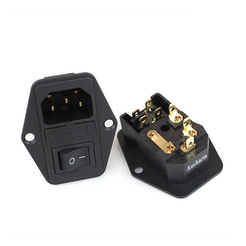 1 шт. IEC seat входной модульный Штепсель розетка позолоченная медь 10A 250 В для hifi аудио усилителя dac Бесплатная доставка