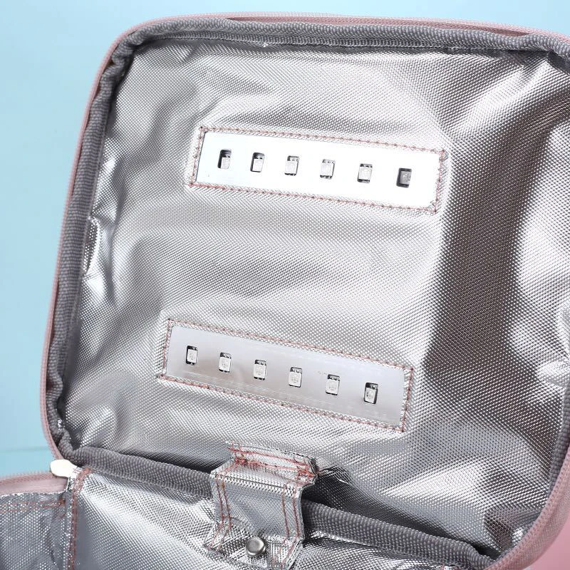 Размер: 240*195*150 мм Светодиодный UVC Количество: 12 шт. Мощность: 8 Вт Напряжение: 24 В постоянного тока Батарея: 2000 мА-ч Метод измерения: Магнитный Порт зарядки: USB Особенности: Портативный носить чехол. Ультрафиолетовой стерилизации. Анион; Защита от запаха пота. Многофункциональность, подходит для: детских игрушек, косметических средств и средств по уходу за кожей, аксессуаров для одежды, электронных продуктов и т. д.