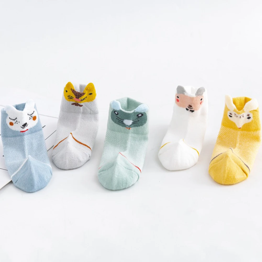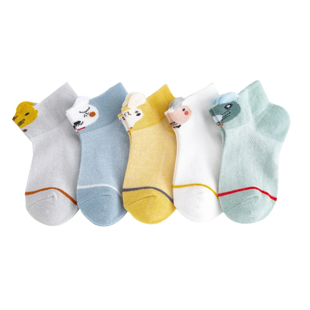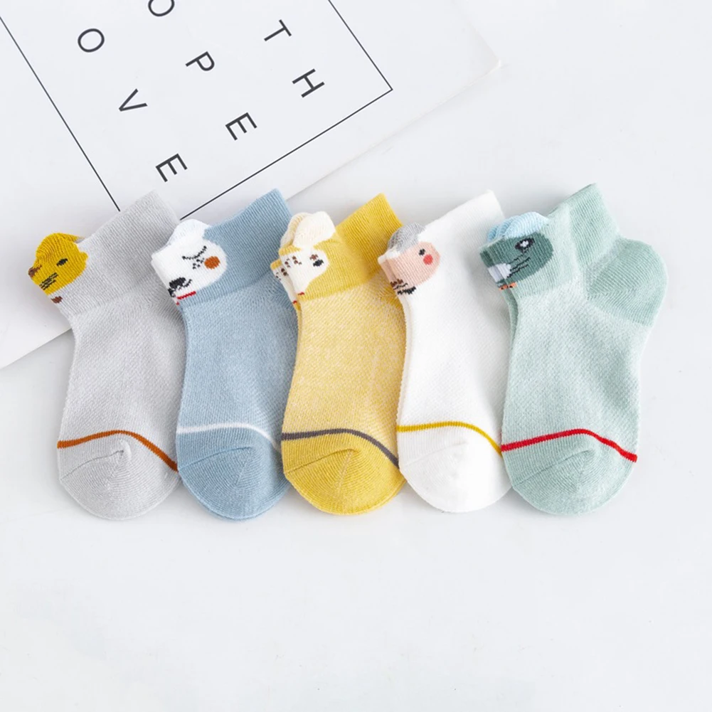 Летние дышащие носки-тапочки из хлопка с рисунком для мальчиков и девочек, 5 пар