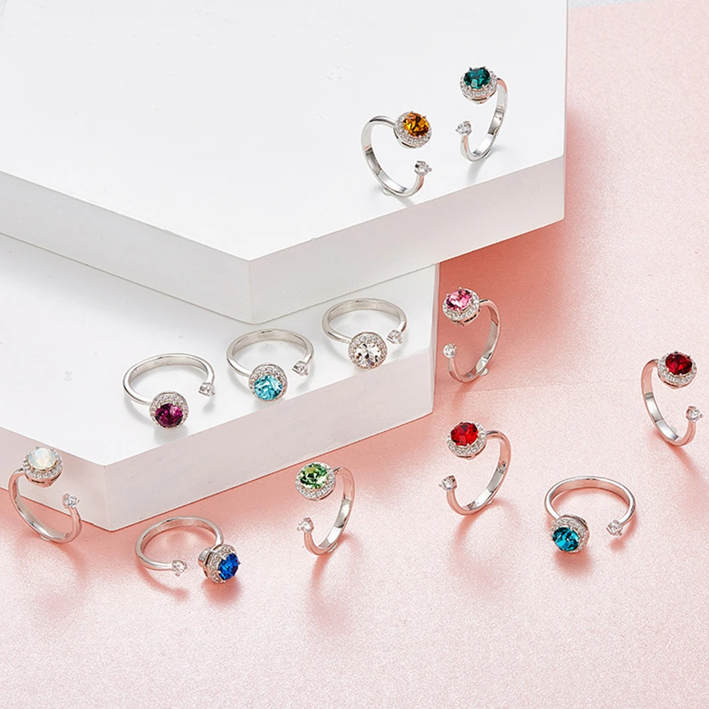 Женское круглое инкрустированное кольцо с открытым пальцем, регулируемое ювелирное изделие, подарок на день рождения