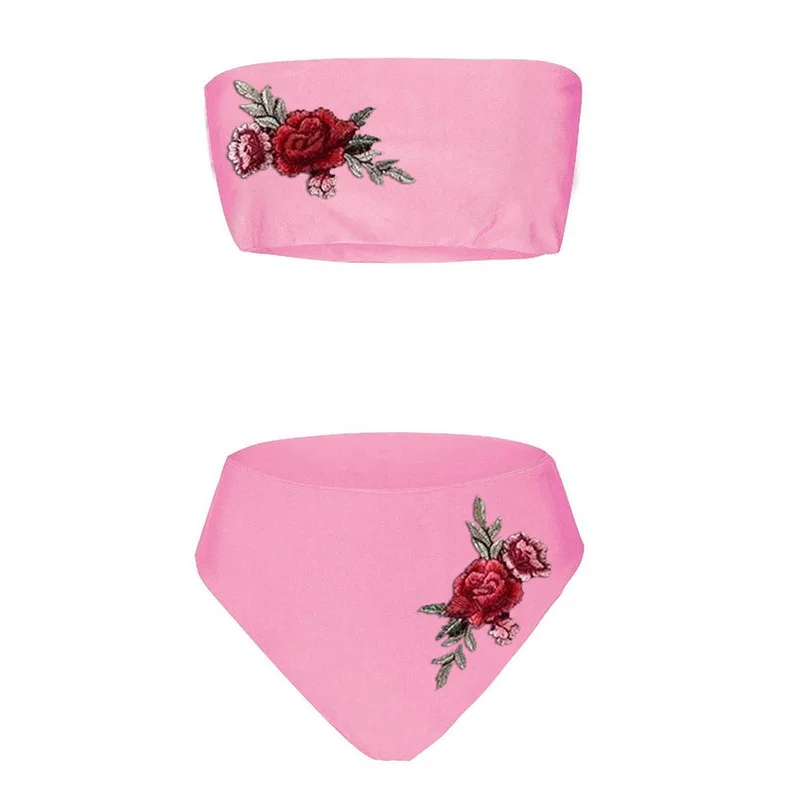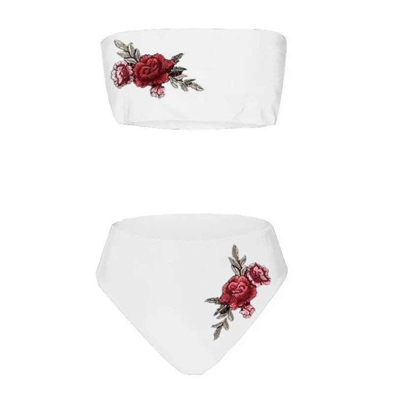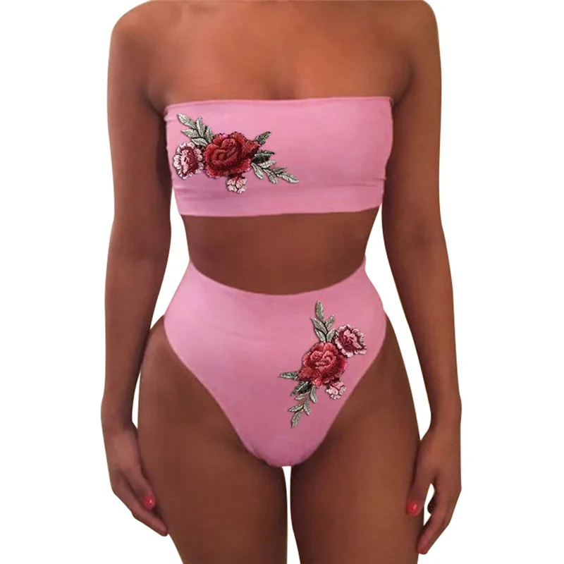 Женский модный сексуальный купальник с вышивкой розы с высокой талией, комплект бикини, купальный костюм