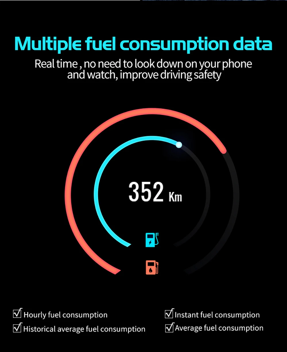 1. Стереоскопическое изображение. Отображение информации в трех размерах через полуотражающий полупрозрачный объектив. Нет отражения, нулевого ghosting и более четкого отображения в дневное время. 2. Изысканный и уникальный дизайн, без внешнего света, без пленки, без ненужного отражения изображения, подключи и работай, прост в эксплуатации. 3. Мощный и практичный функциональный дисплей, такой как скорость, температура воды и напряжение и т. д. HUD может устранить код неисправности, отображаемый на приборной панели двигателя без профессионального оборудования. 4. Раннее предупреждение о высокой температуре воды и низком напряжении, чтобы избежать поломки автомобиля. 5. Двойной режим OBD2 + GPS подходит для всех моделей автомобилей. Пожалуйста, обратите внимание: Рабочая система OBD2: Рабочее напряжение: 11 ~ 18 В постоянного тока (12 В постоянного тока/200 мА), когда напряжение выше 24 В, пожалуйста, используйте usb-кабель для gps-режима. Выбор системы: когда HUD включен, потяните кнопку настройки, чтобы выбрать язык и системы. Система по умолчанию является OBD. Внимание:1. Режим работы OBD2 не совместим со следующими транспортными средствами: