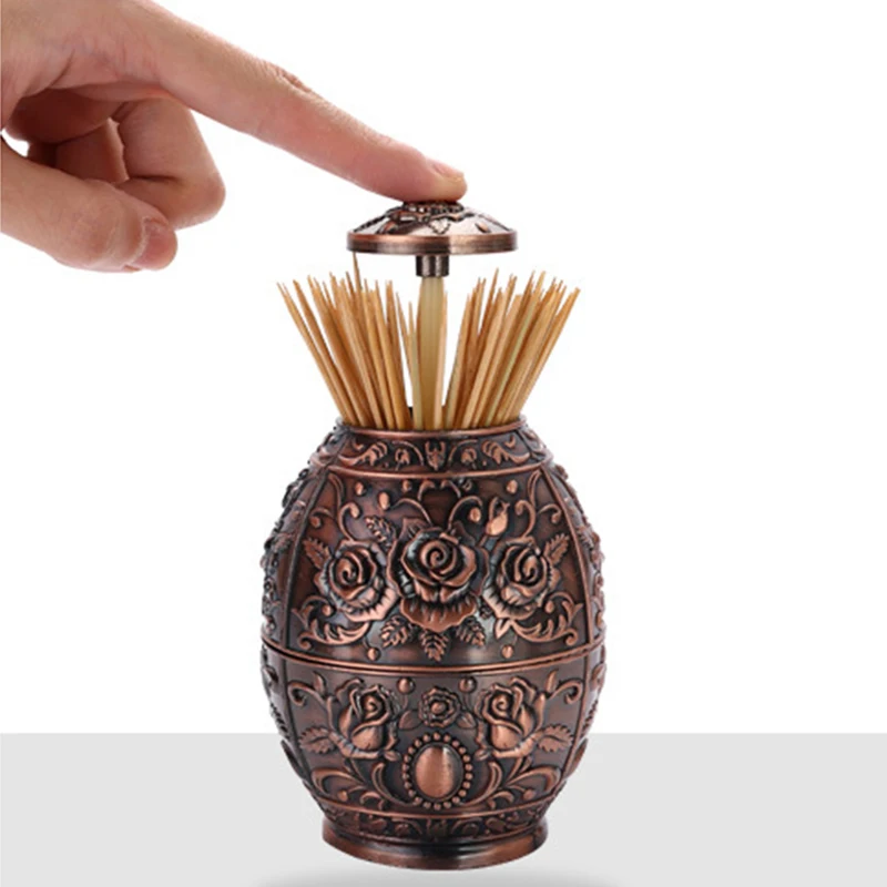 Держатель зубочисток автоматический нажимной Стильный ретро металлический Европейский ящик для Зубочисток контейнер для домашнего ресторана кафе клуба бара отеля использования