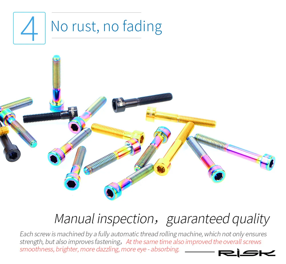 Примечание: крышка стержня не включена, только для отображения Точное изготовление, прекрасная расцветка Поверхность винтов из титанового сплава окрашена технологией вакуумного нитрида PVD (физическое осаждение пара) для улучшения износостойкости и твердости поверхности, Также делает винты более красивыми и долговечными, не выцветают. Все, что мы сделали, только для более высокого качества.