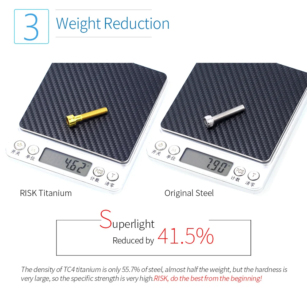 Титановая оригинальная сталь Suuperlight Уменьшено на 41.5% Плотность ТС4 титана составляет всего 55.7% от стали, почти половина веса, но твердость очень большая, поэтому удельная прочность очень высока. Риск, сделайте Лучшее с самого начала!