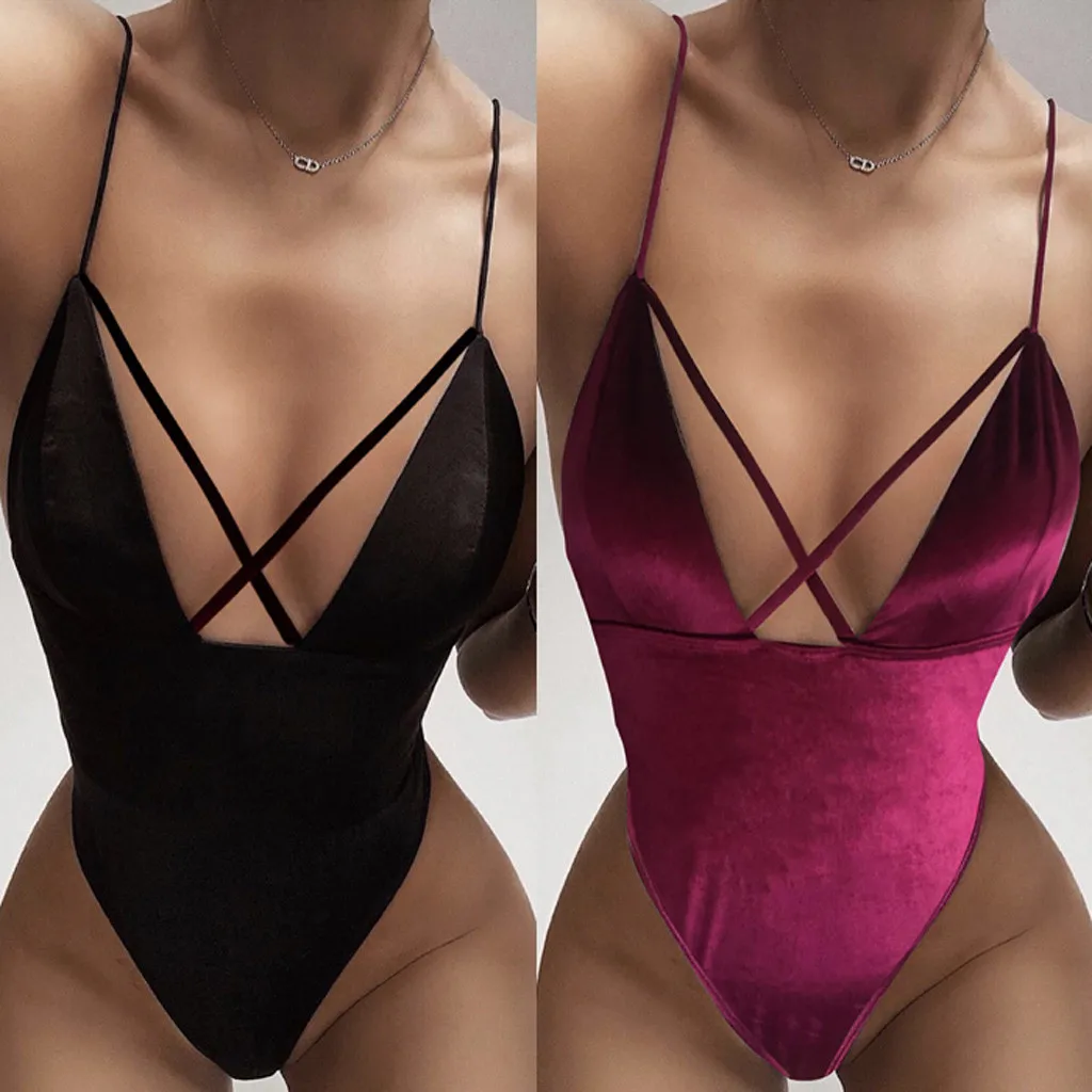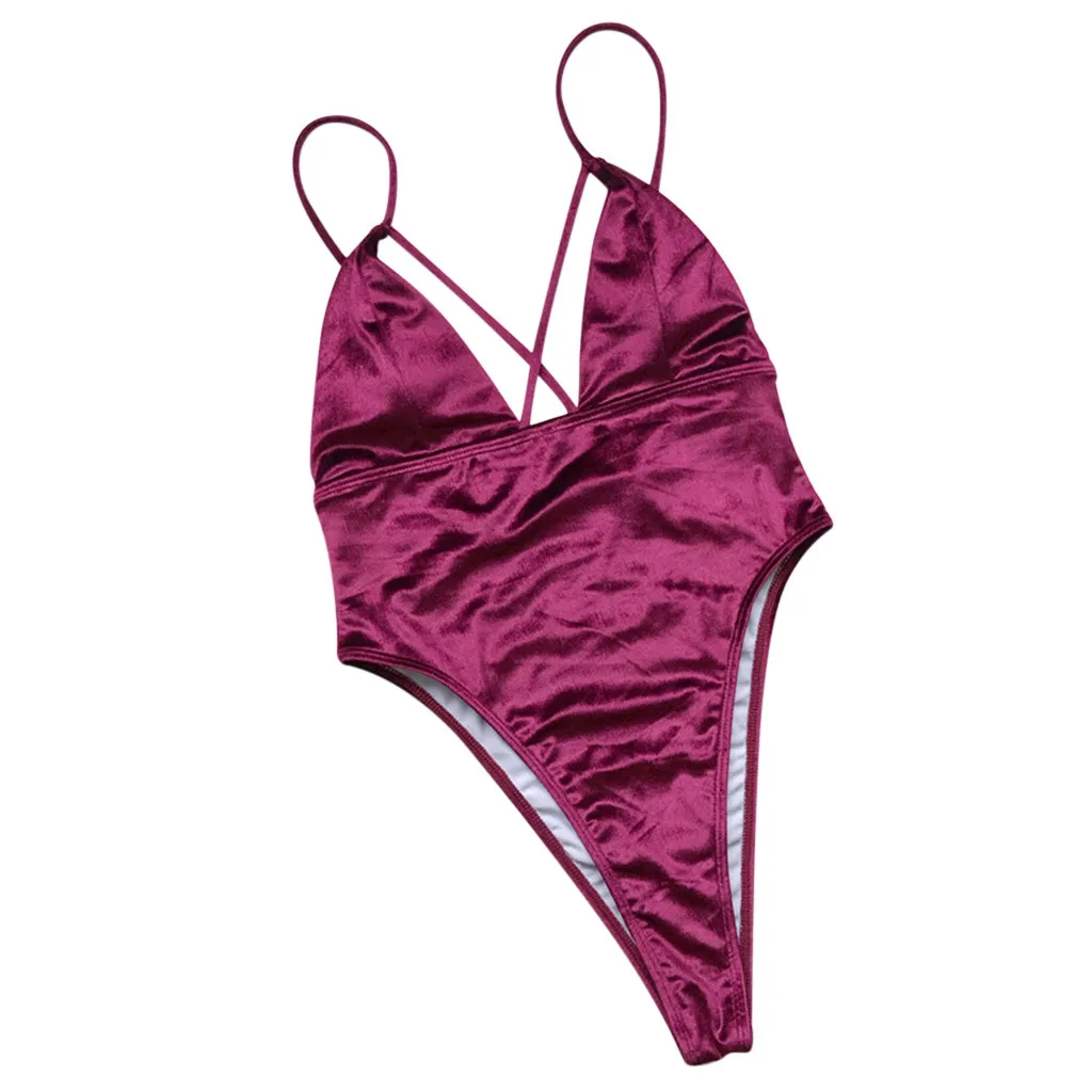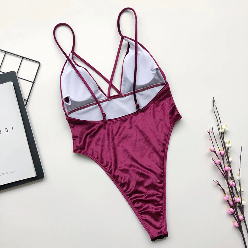 Gold velvet swimsuit one piece Simple Summer swimwear women luxurious bikini push up pad Bathing suit monokini Badmode купальник%