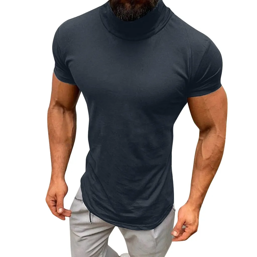 Мужская повседневная однотонная водолазка с короткими рукавами; Сезон весна-лето Блузка рубашки для мальчиков
