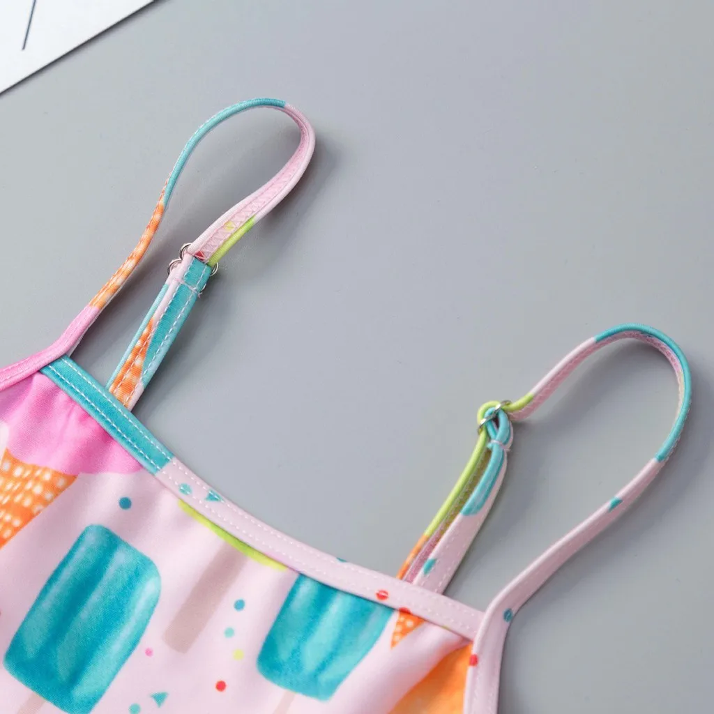 Детская одежда для девочек с милым принтом рожка мороженого «Одна деталь купальники купальник, шапочка, комплект