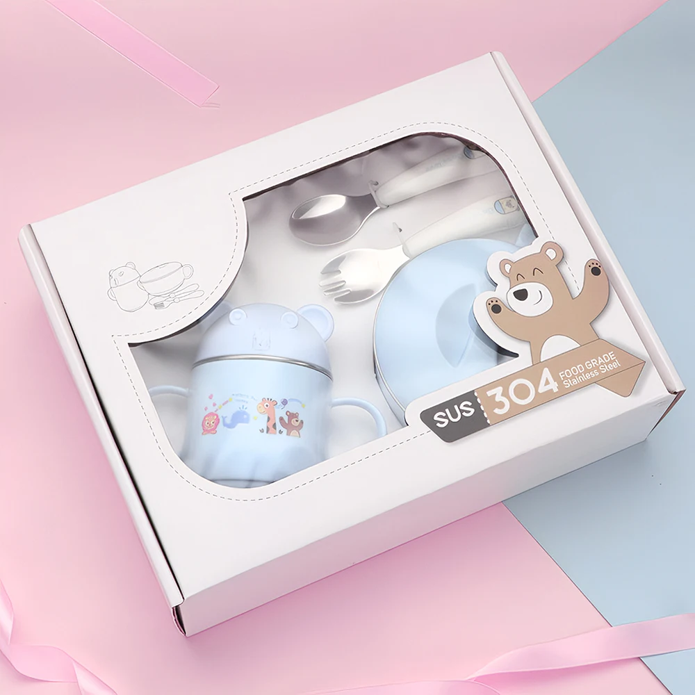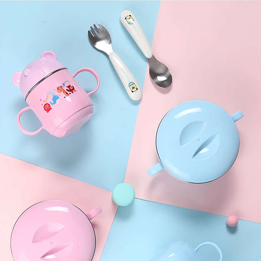 BPA БЕСПЛАТНО Детский комплект для кормления детский набор посуды 304Миска для кормления из нержавеющей стали с крышкой молочная чашка ложка и вилка для малышей.