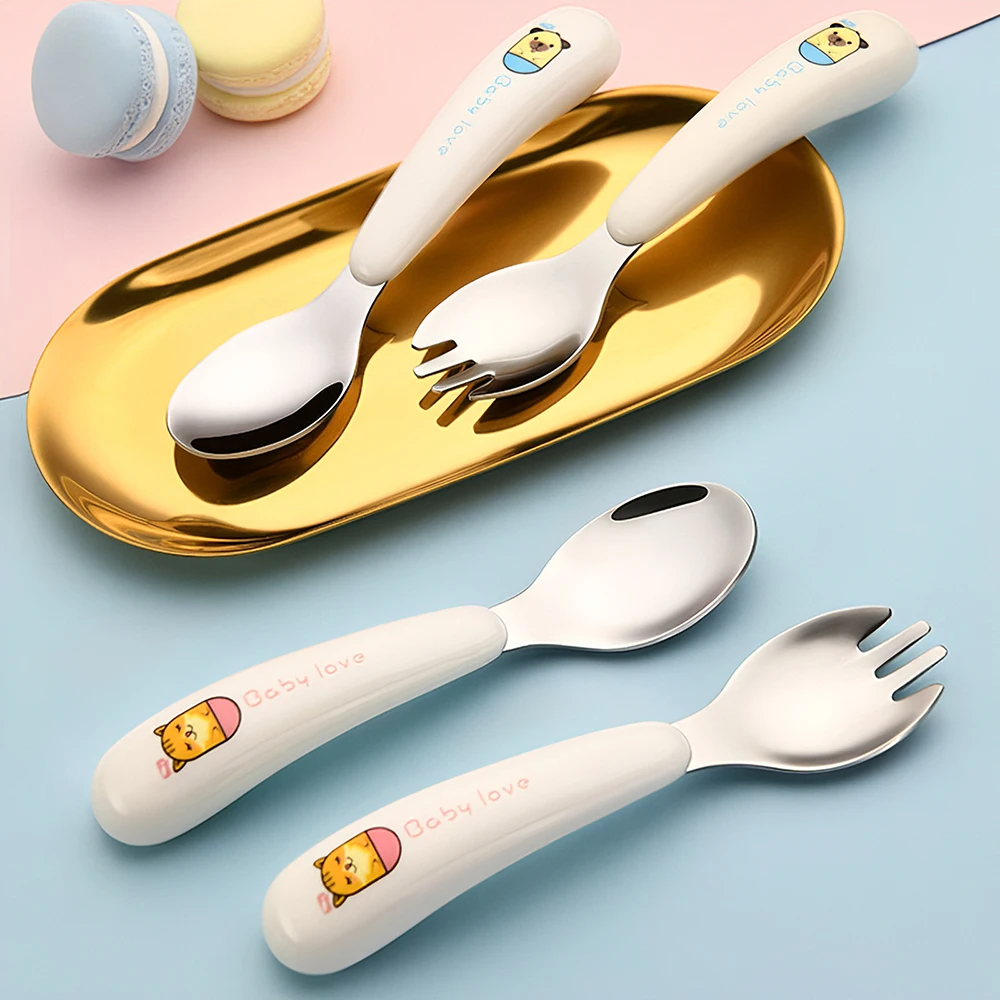 Эргономичный дизайн для легкого захвата: специально разработанныйРучки с обеих сторон для детей для легкого захвата. Вилка и ложка более удобные и противоскользящие, которые легко захватывают для детей.