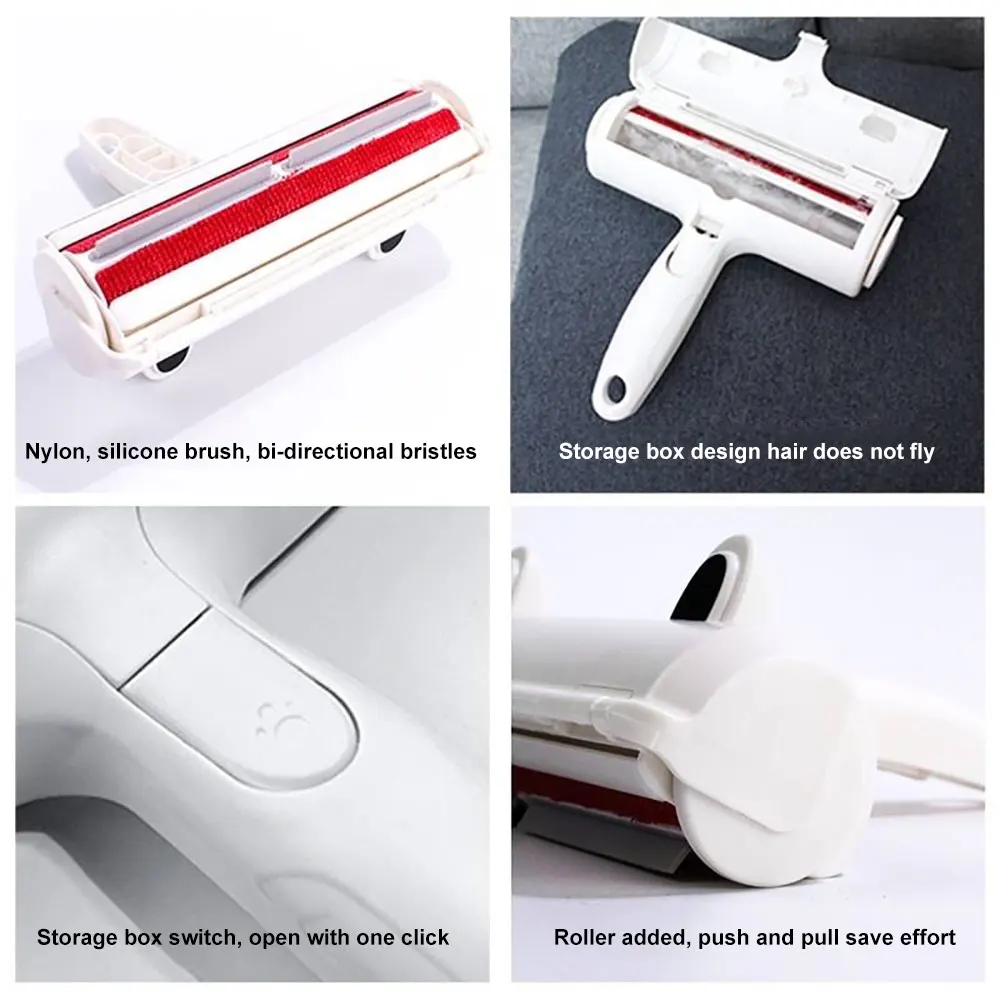 The pet hair remover is suitable for hair of cat or dog, whose strong clean ability can remove the pet hair effectively from sofa, bed, carpet, cloth, etc.