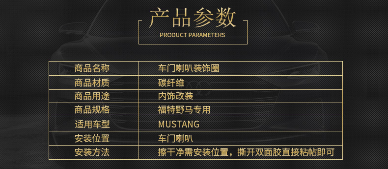 1. Модель автомобиля: Для Ford Mustang 2015 + 2. Цвет: черный 3. Материал: углеродное волокно 4. Посылка включает в себя: 2 шт./комплект 5. 100% абсолютно новый высококачественный 6. Украсьте ваш автомобиль очаровательной роскошной яркой