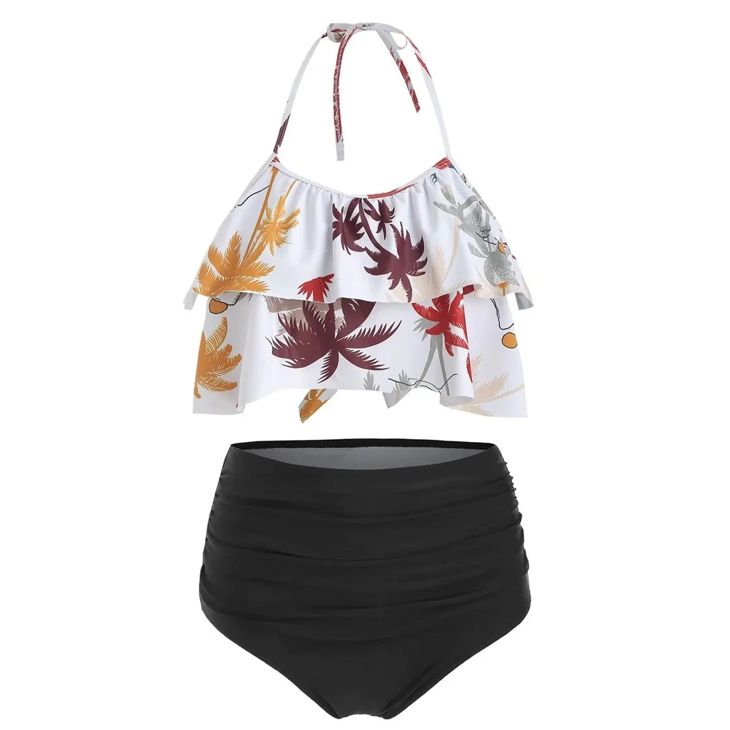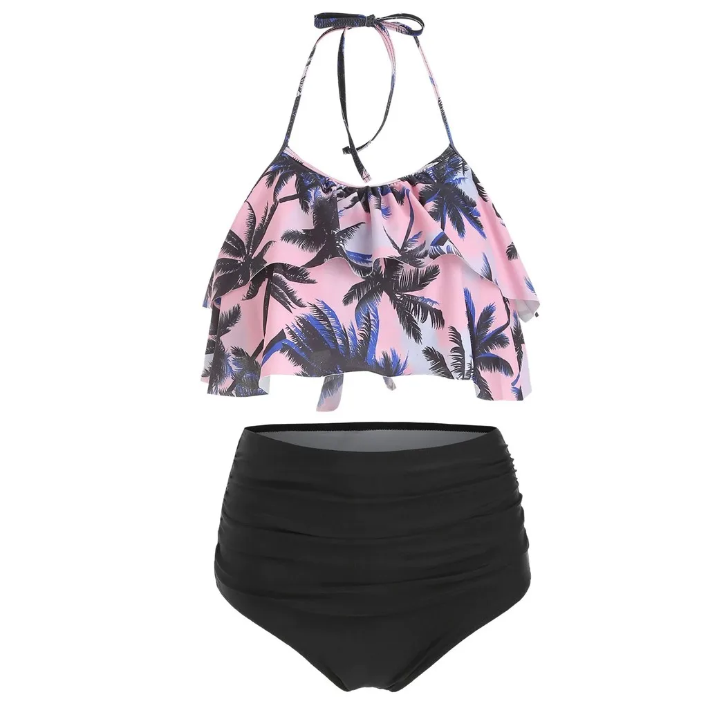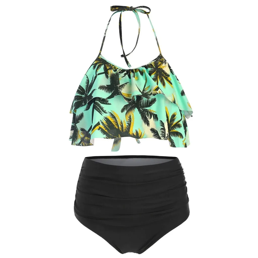 Женский богемный комплект бикини с высокой талией и гавайским принтом, Раздельный Бразильский купальный костюм из двух предметов для женщин 2020