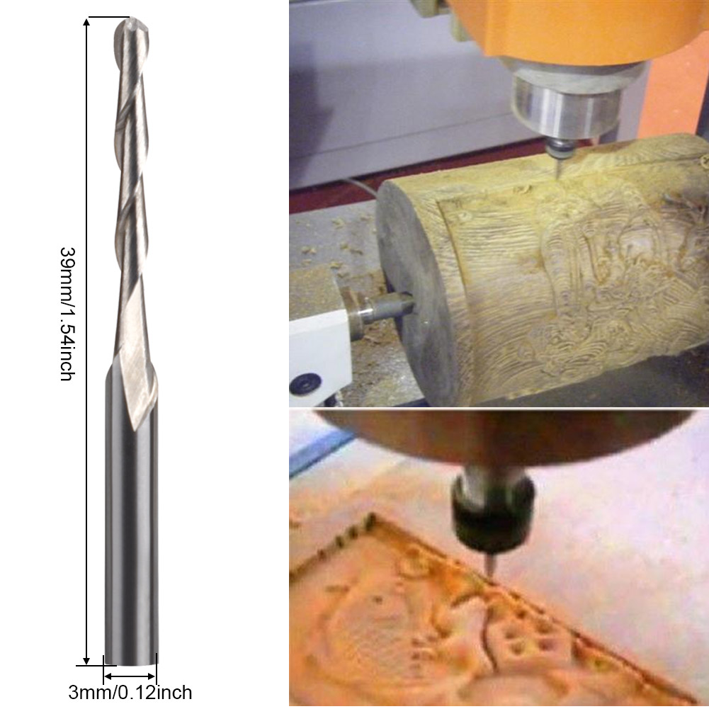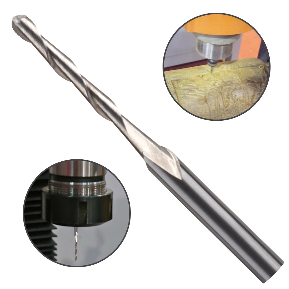 HHS 1 шт. 3,175 мм Вольфрамовая сталь фреза 2 мм Диаметр спираль 2 флейты шаровой носовой конец фрезы CNC Гравировальный Бит Деревообрабатывающие инструменты