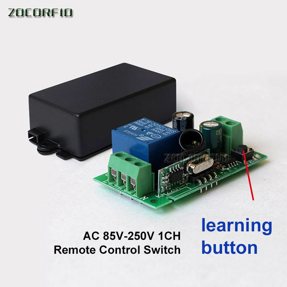 Входная мощность: 85 В-250 В переменного тока Ток в режиме ожидания: <8.5ма Частота RF: 433 м Режим работы RF: супергетеродинный Чувствительность приема: > 97 дБм Дальность передачи: более 15 метров Режим декодирования: Программное обеспечение MCU декодирование Обучаемые передатчики: 1-16 передатчиков Поддержка удаленного типа: код обучения (1527) Режимы переключения: мгновенный и переключаемый Тип проводки: стационарный терминал Выход переключателя: нормально открытый и нормально закрытый. Размеры буп (Д, Ш, в) 35*30*18 мм 1 3/8*1 3/16*11/16" Переключатель Выход: Позиция №: нормально открытый COM: общий NC: нормально закрытый