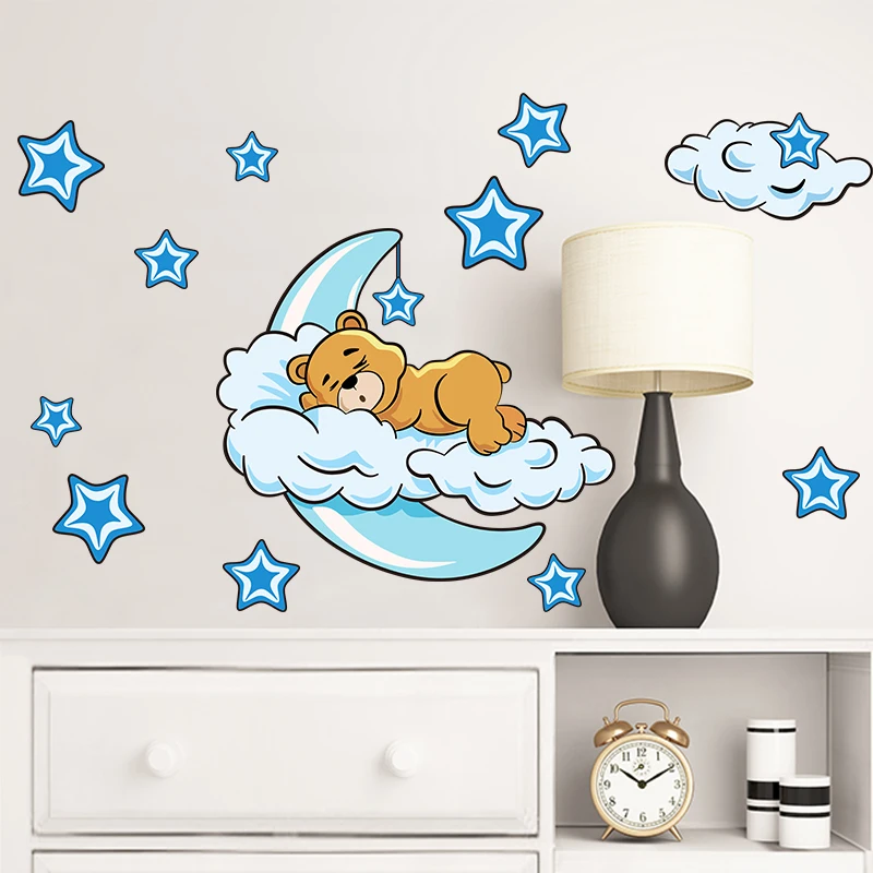 Посылка: 1 * настенная наклейка со звездами и медведем