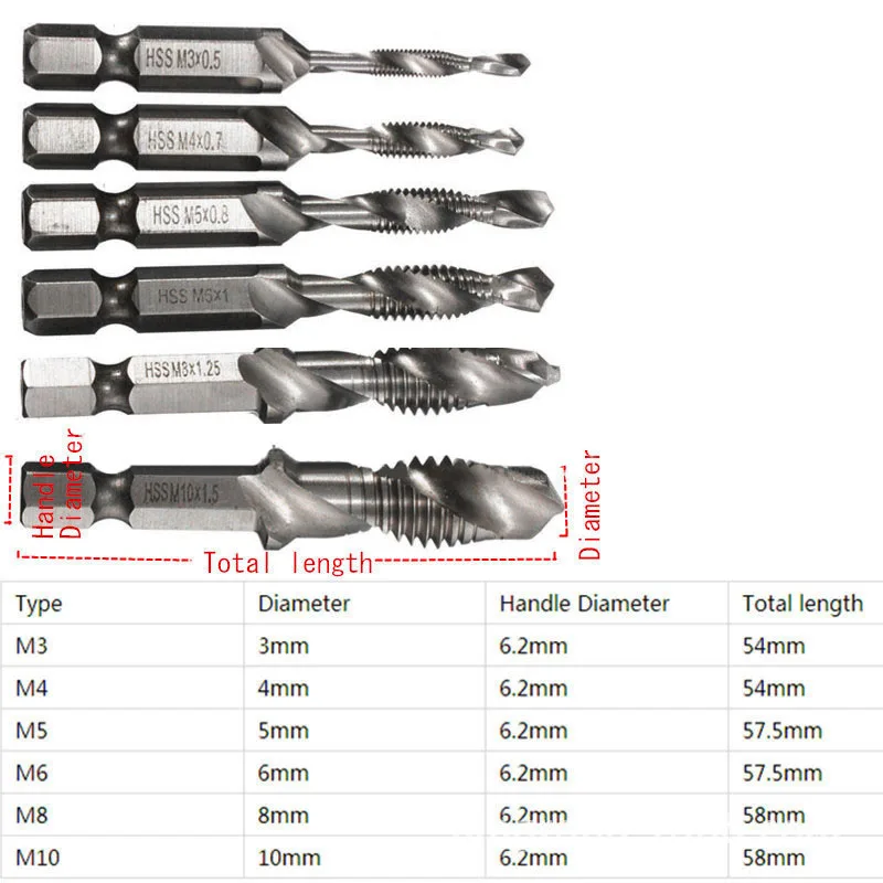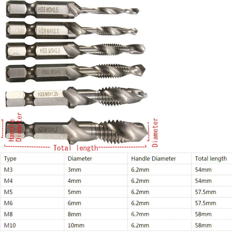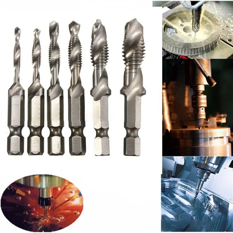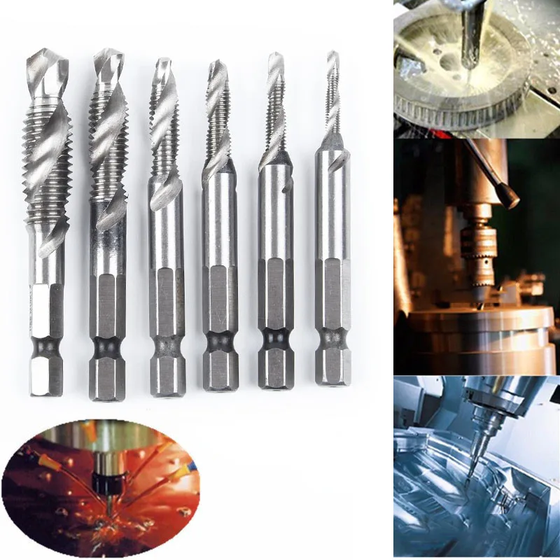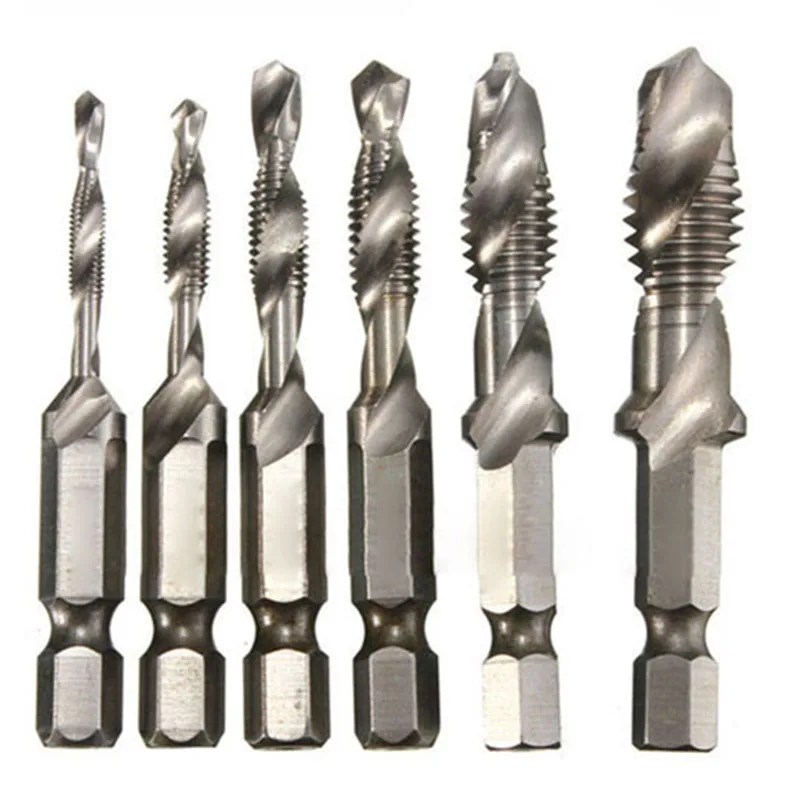 *6Шт.M3-M10 1/4 "шестигранный хвостовик HSS метрический кран с винтовой резьбой сверло ИнструментНабор