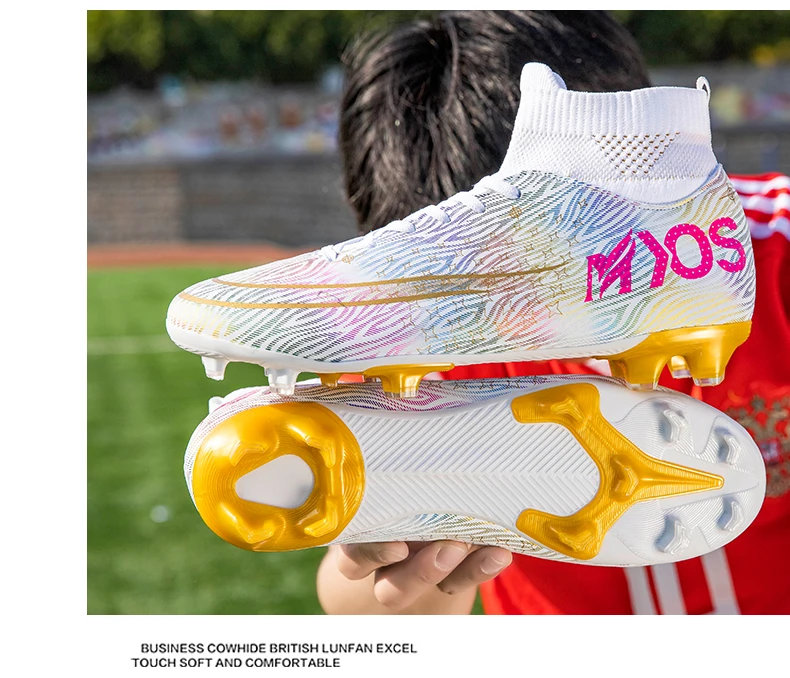 Популярные стильные мужские футбольные бутсы, Длинные шипы, мужские футбольные бутсы, черные, белые мужские футбольные бутсы на шнуровке, Botines De Futbol